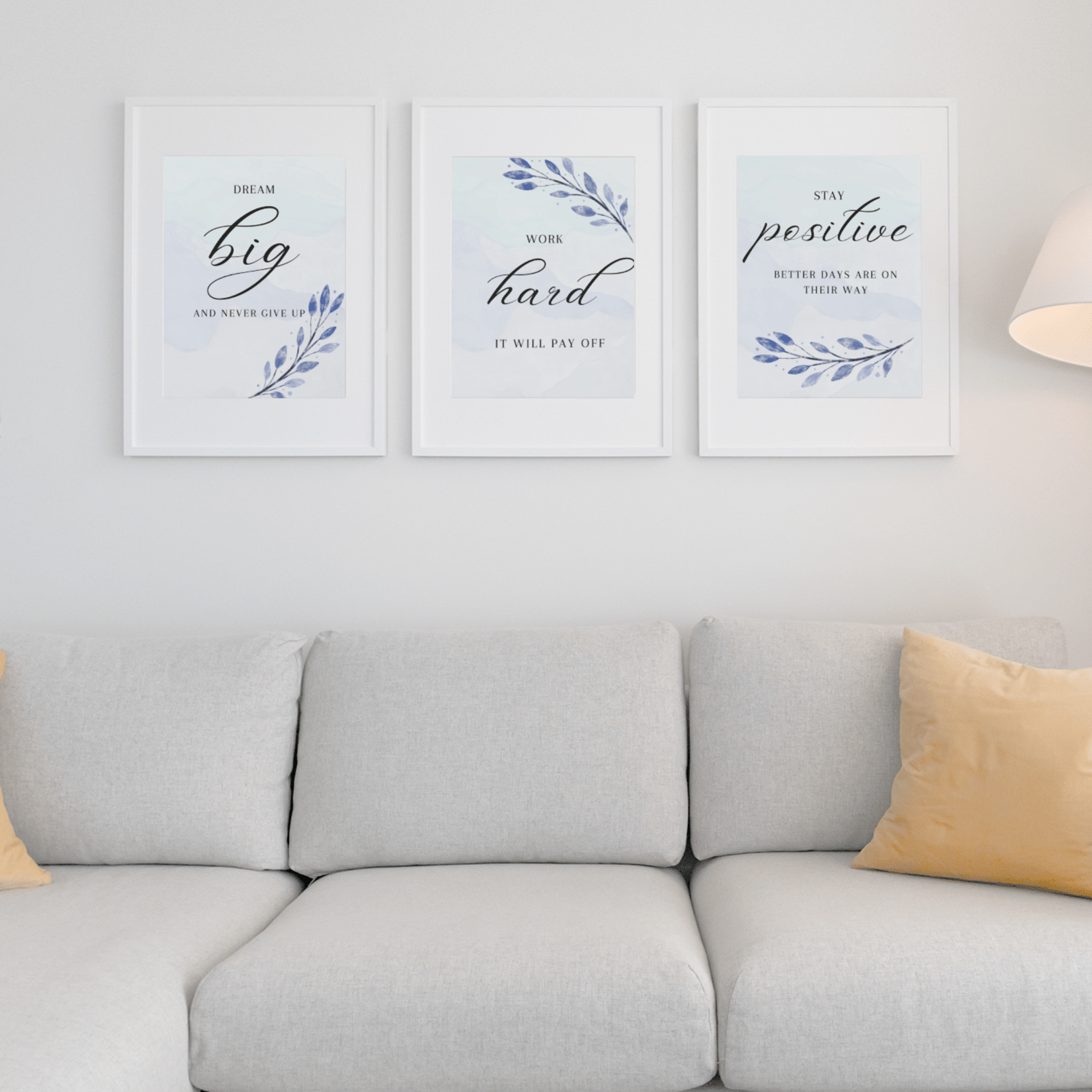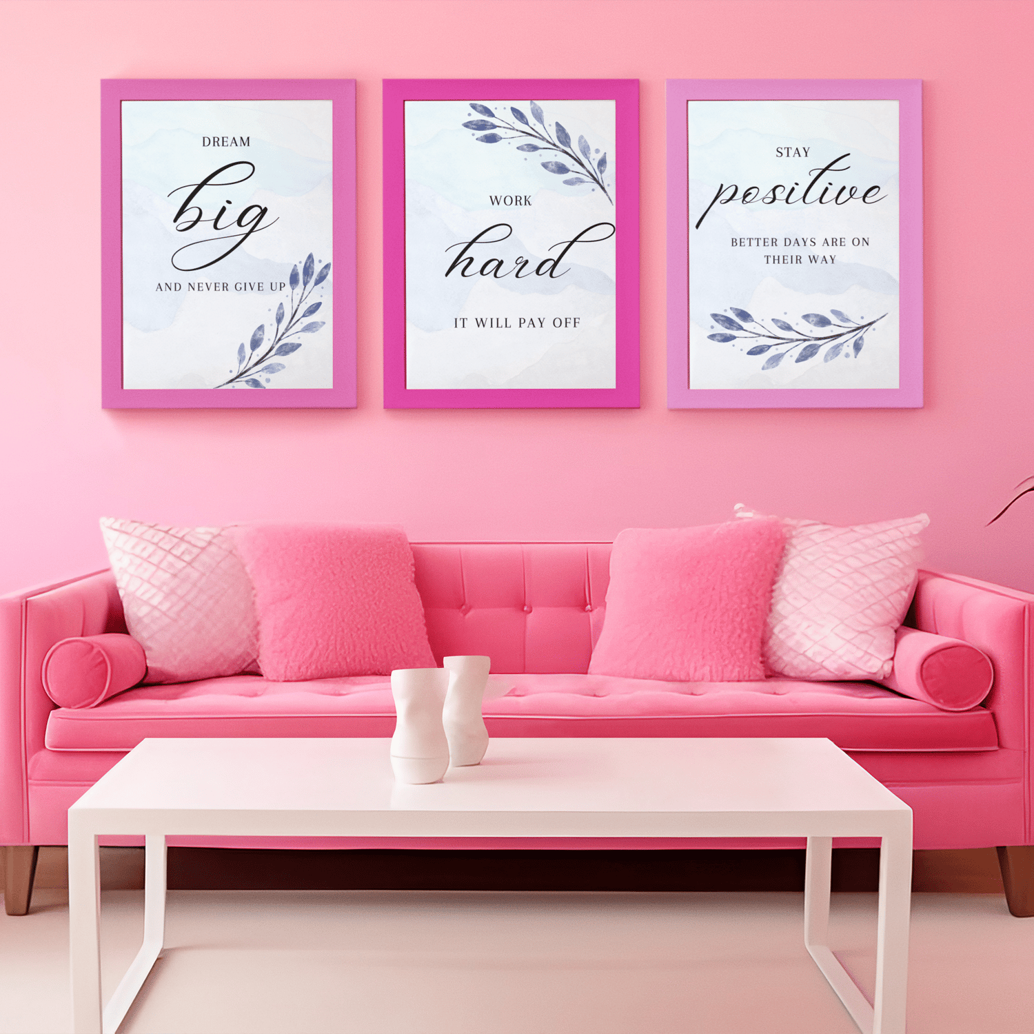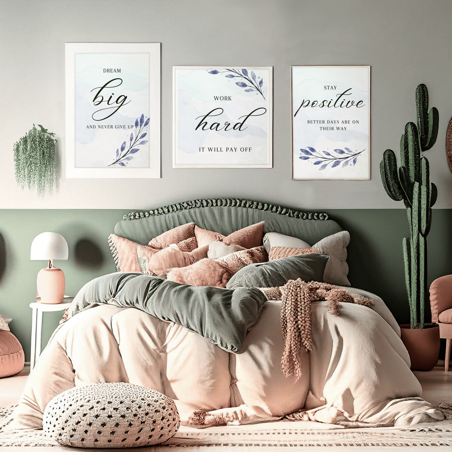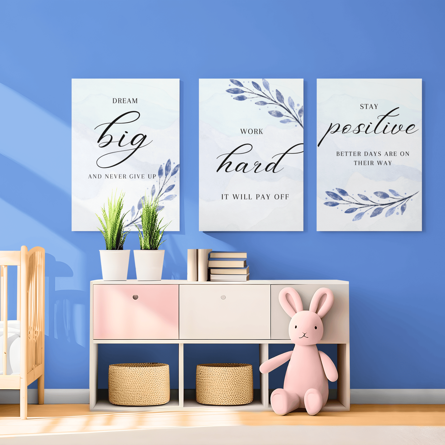 Motivational Wall Art Set of 3 – Dream Big, Work Hard, Stay Positive Printable Decor