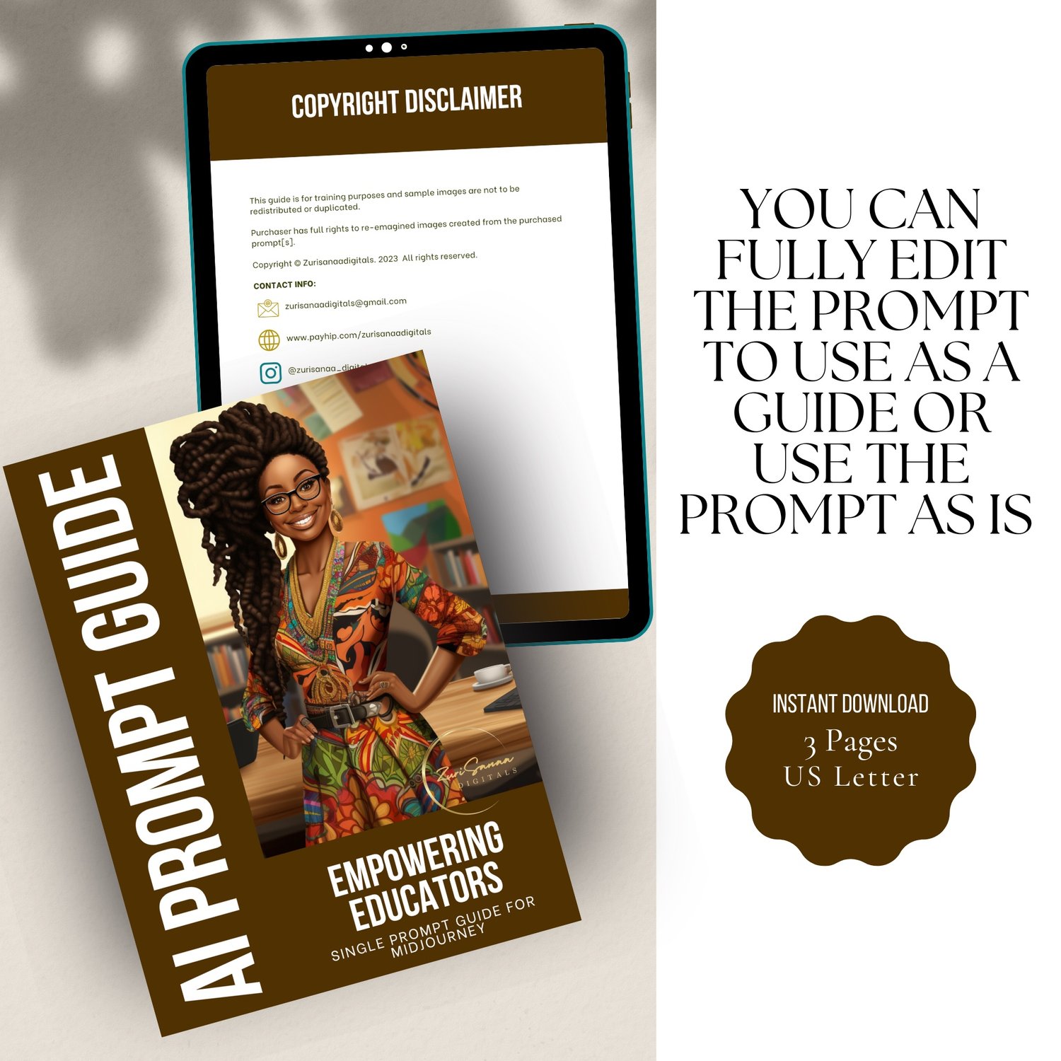 Ignite your creativity and celebrate the power of black women educators with our exclusive Midjourney Empowered Educators Prompt Guide! 🌟 This digital PDF download features one inspiring prompt that will take you on a journey of empowerment, knowledge, and cultural pride. Discover the beauty of Afrocentric representation as you create art that pays tribute to the strength and influence of black women in education. 🎨💪