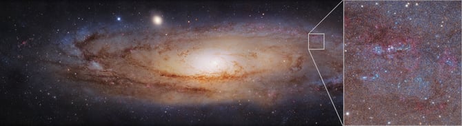 Data for most of the image are from the NASA/ESA Hubble Andromeda Galaxy M31 Mosaic, 16 January 2025. Credit: NASA, ESA, Benjamin F. Williams (University of Washington), Zhuo Chen (University of Washington), L. Clifton Johnson (Northwestern University), Joseph DePasquale (STScI).