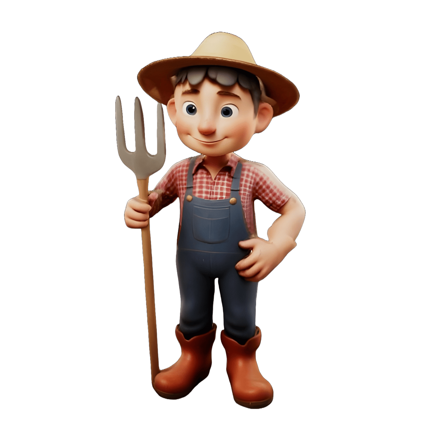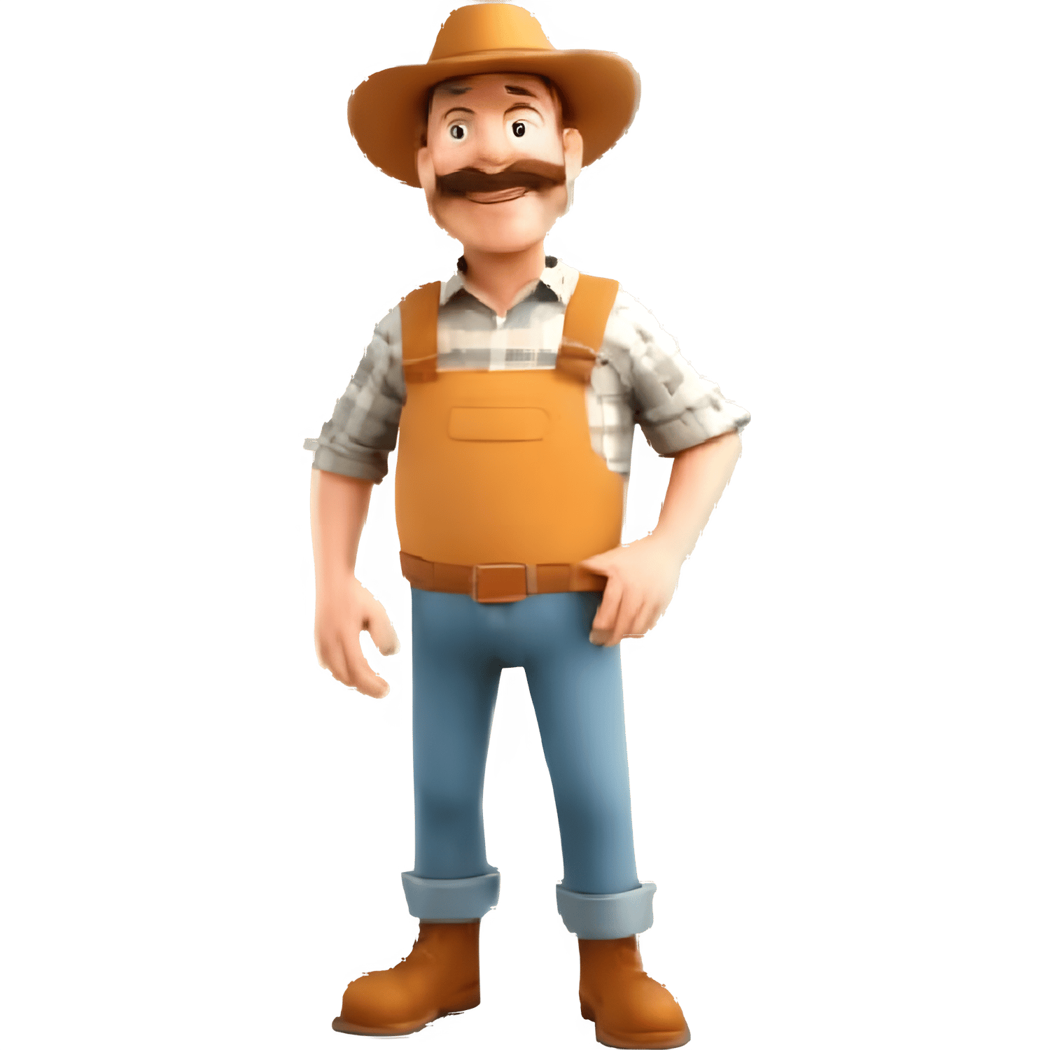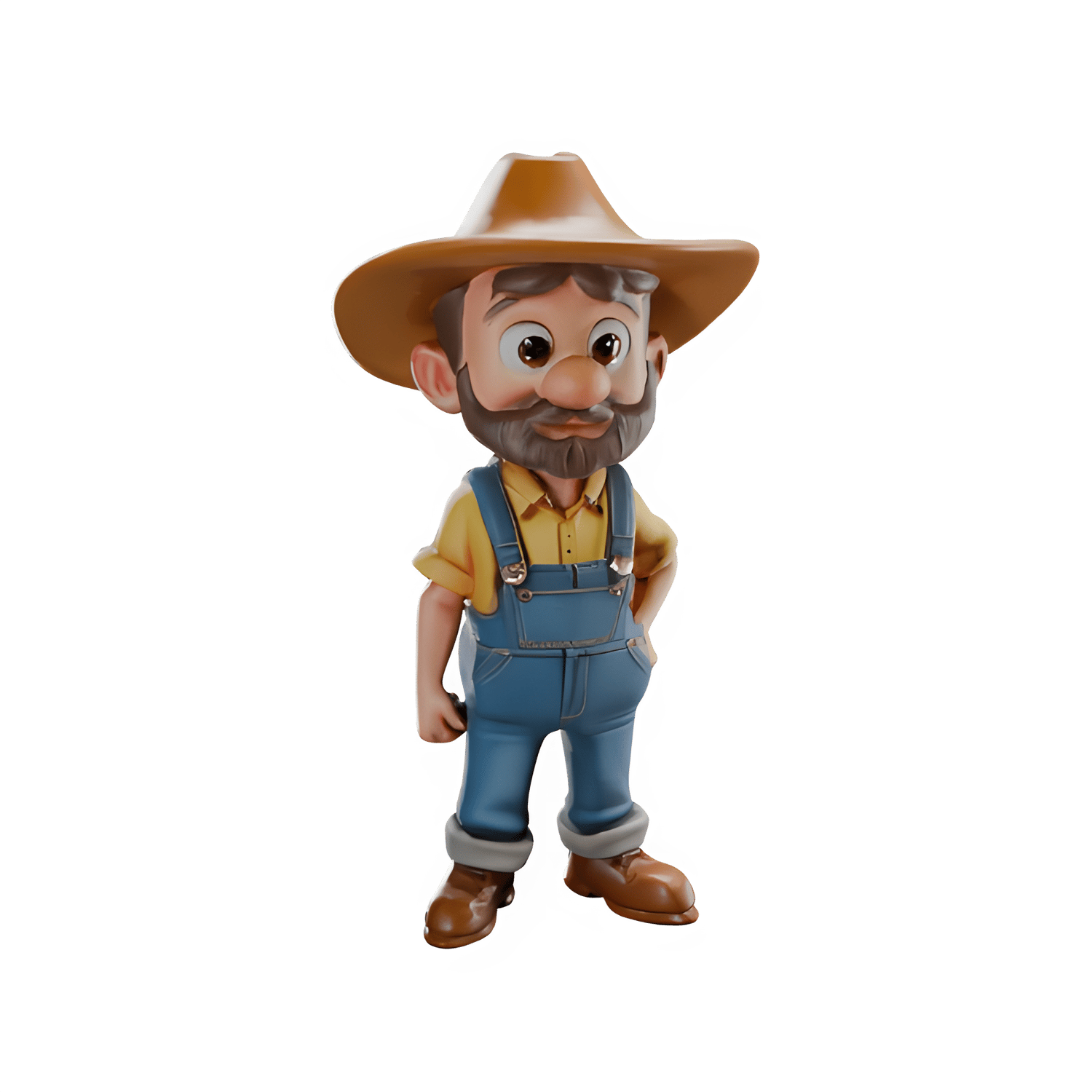 Hey there! These adorable 3D farmer characters are designed in a charming cartoon style that would bring warmth to any project. The set features three variations of farmer characters - a bearded farmer in overalls, a young farmer with a pitchfork, and a mustached farmer in an apron.