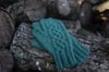 Feminine and fearlessly rugged, rich cabling runs down this timeless accessory set. Two-stitch cables travel to new levels of complexity, designed to satisfy the adventurous knitter; the right and left hand mittens are worked as mirror images of each other. Densely knit with a secure cuff and roomy hand, these mittens are the perfect companion to a chilly day. The band of the matching hat is knit sideways and stitches are picked up for the crown and brim. Named for Ealhswith of Mercia, wife of Alfred the Great.