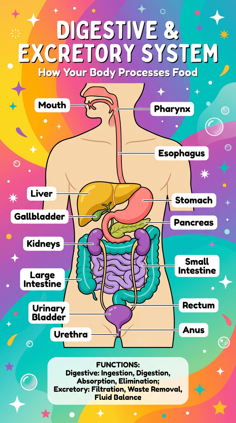 This Digestive & Excretory System showcases colorful, easy-to-understand anatomy diagrams and worksheets for middle school students. The printable PDF helps learners explore how food is processed, nutrients are absorbed, and waste is removed from the body. Great for science centers, homework, assessments, or homeschool lessons, this resource supports both visual and hands-on learning.