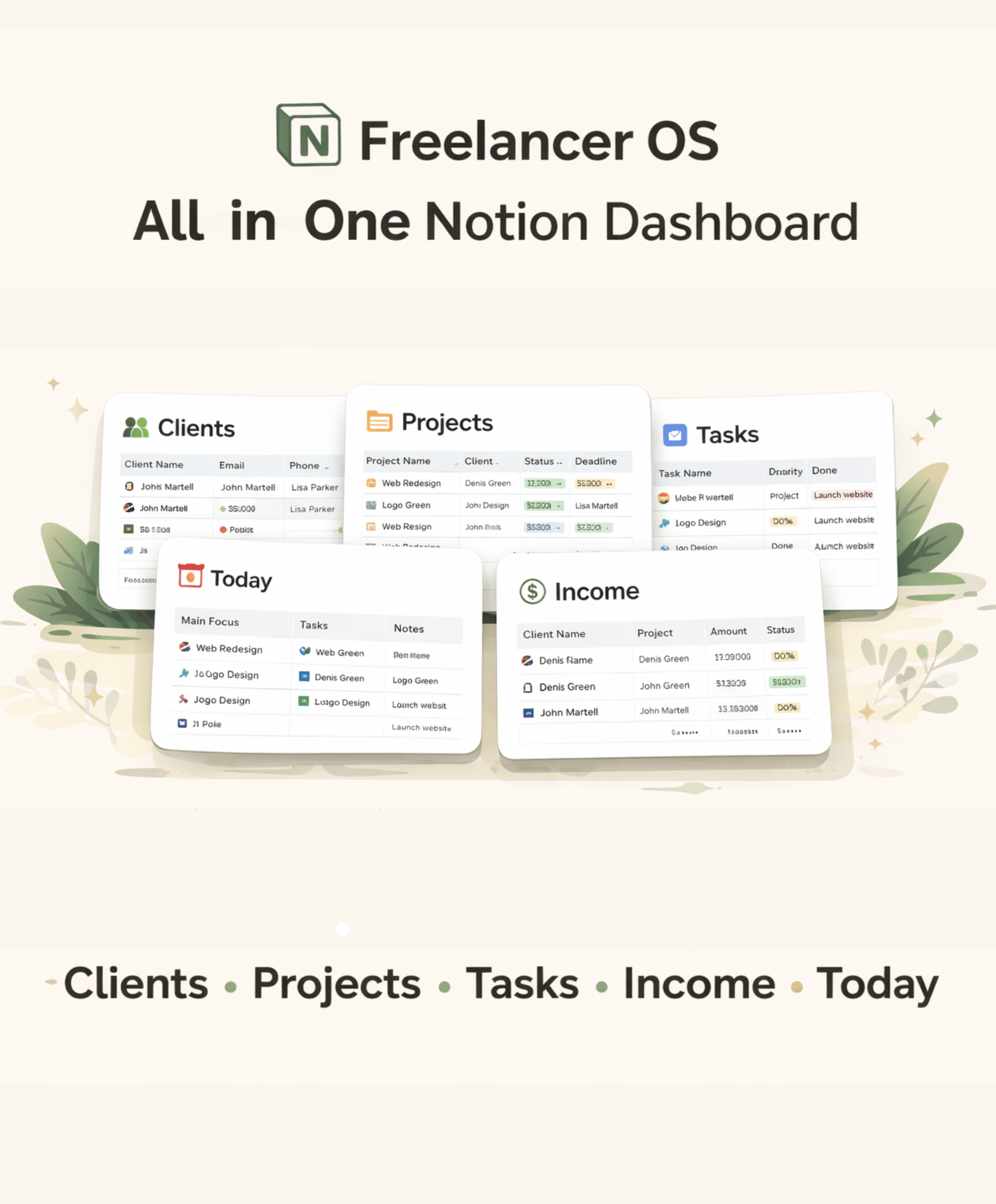 Freelancer OS All in One Notion Dashboard.