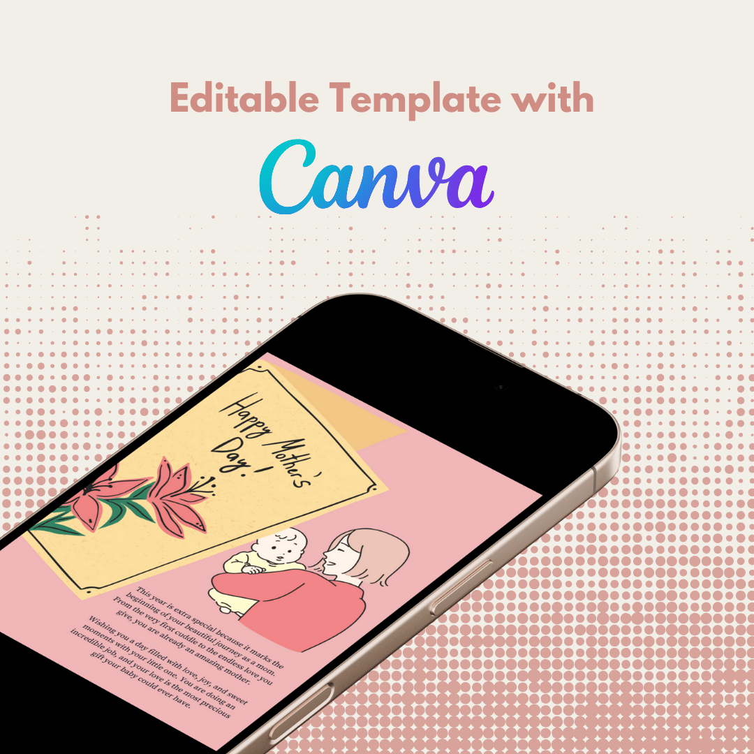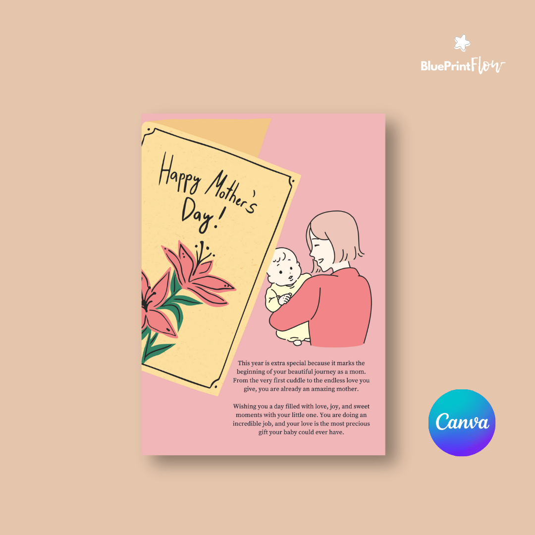This editable Canva template is perfect for sons, daughters, and family members to show love and appreciation to a new mom on her special day.