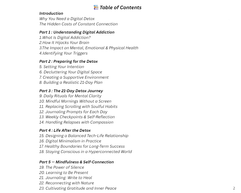 Whether you're burnt out, addicted to notifications, or just craving clarity, this e-book offers a reset β not a restriction.