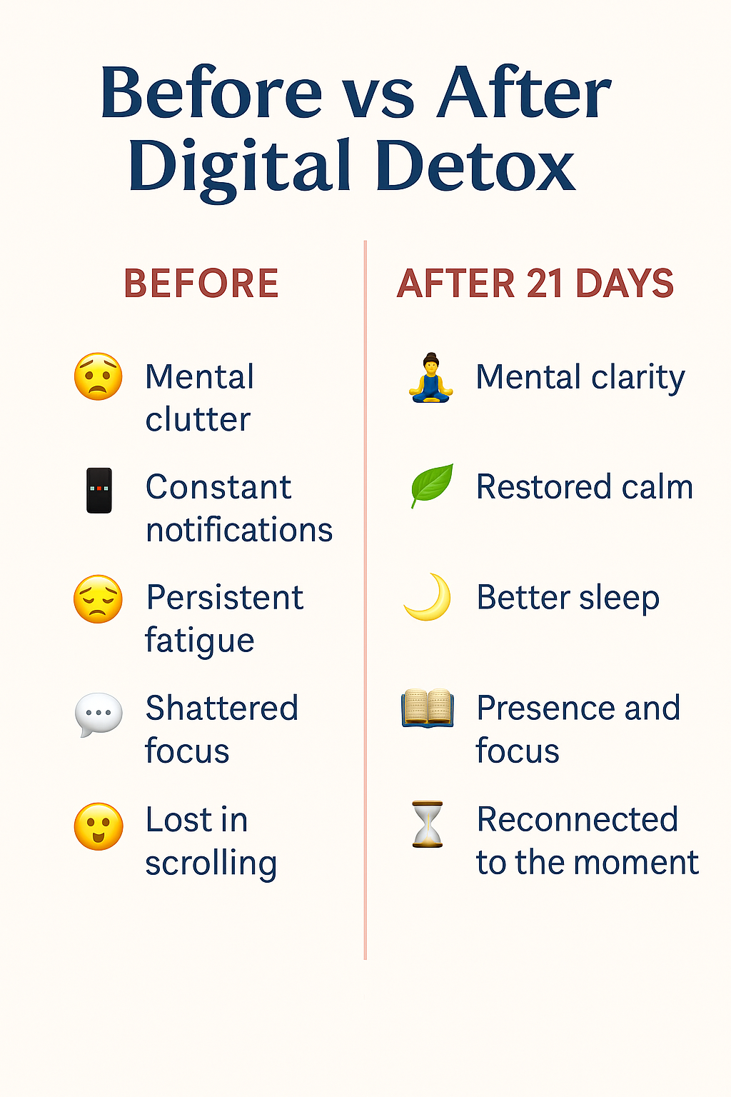 βI didnβt realize how hooked I was until I started this Digital Detox. By day 7, I felt calmer, slept better, and even reconnected with my creativity.β