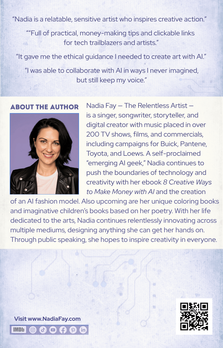 Discover 8 proven ways to make money with AI, even if you're not "tech-savvy." Written by Relentless Artist Nadia Fay—a creative entrepreneur with 200+ song placements on TV and years of experience as a tech-driven graphic artist, photographer and content creator—learn to embrace AI without dimming your creative fire!