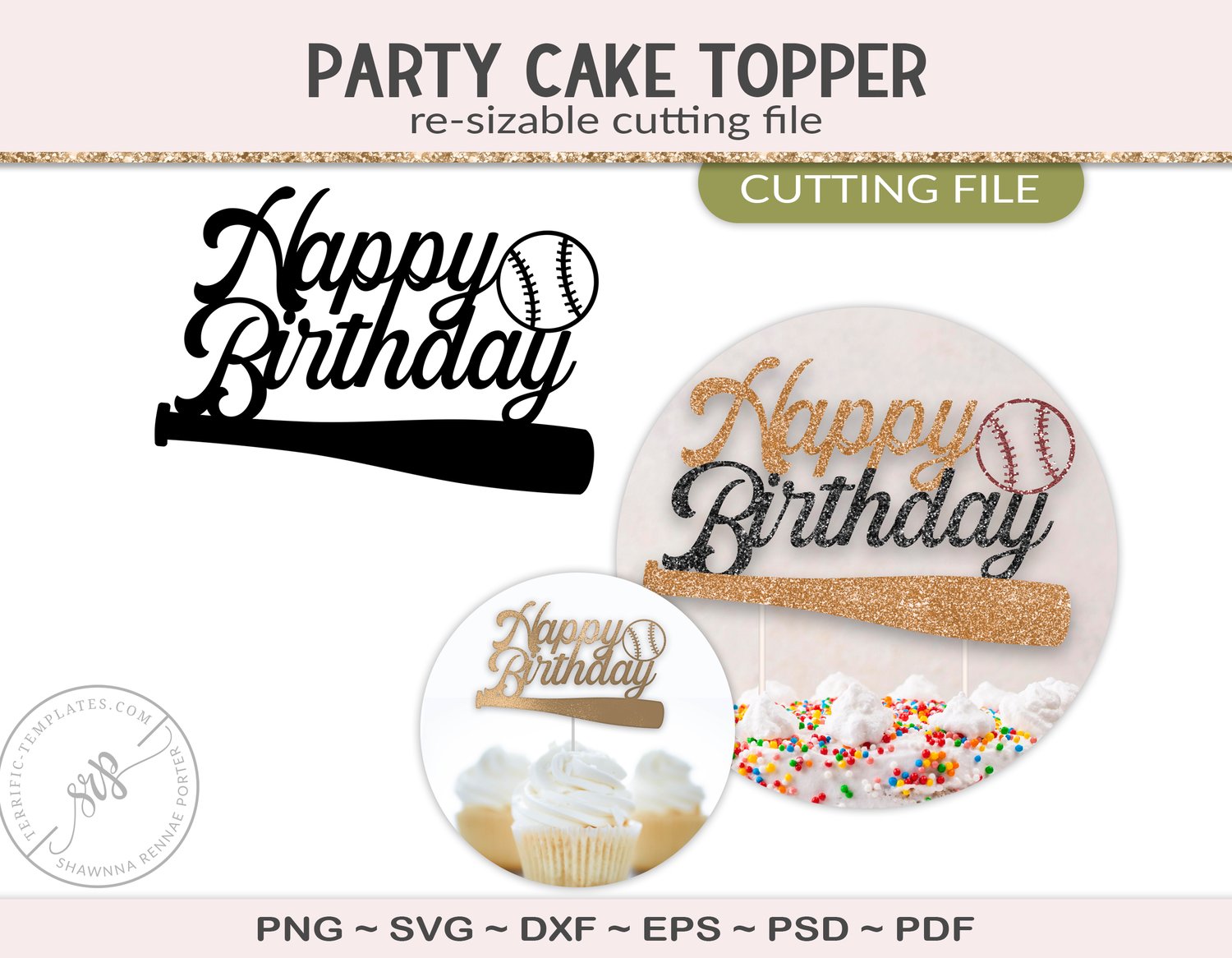 Happy Birthday baseball cake topper cutting file - CT105
