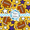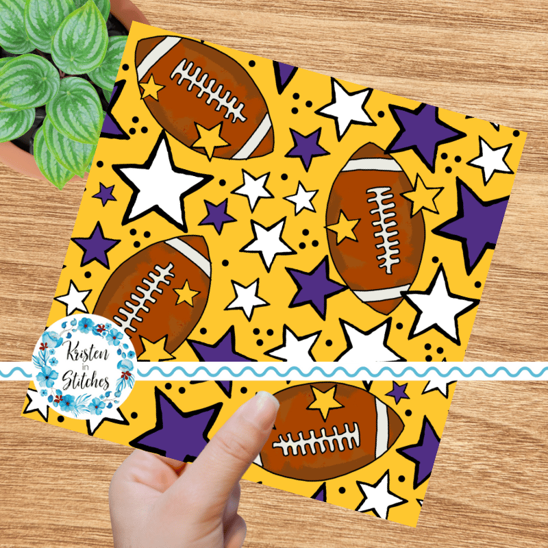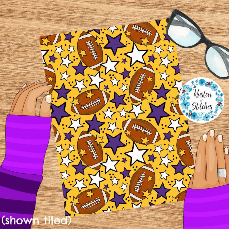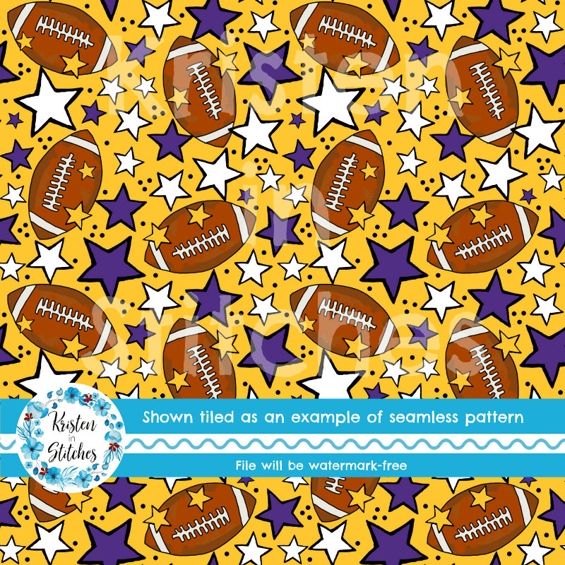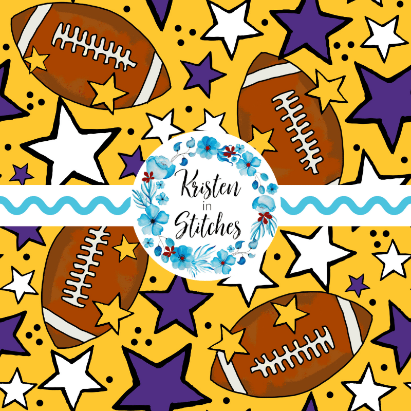 Footballs and stars in Minnesota Vikings colors yellow gold and purple.