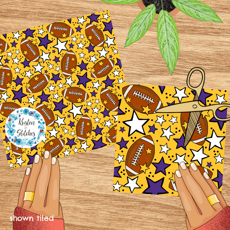 Football Team Spirit Seamless Pattern, Minnesota Vikings Colors Purple and Yellow Gold