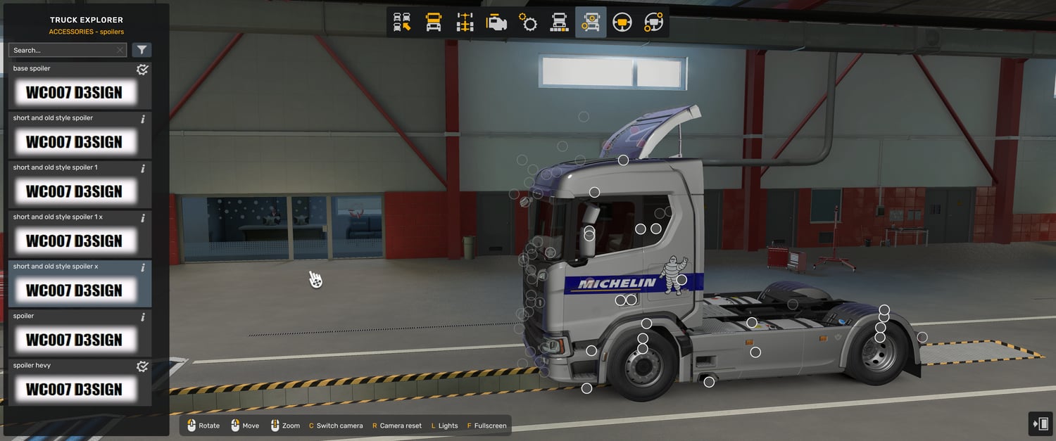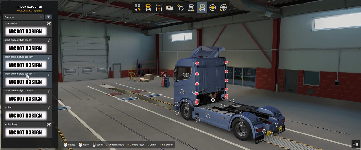 Scania spoilers works only with scania no spoiler mod, dont work alone only with new Scania no spoiler mod and not work with and Base game Scania truck