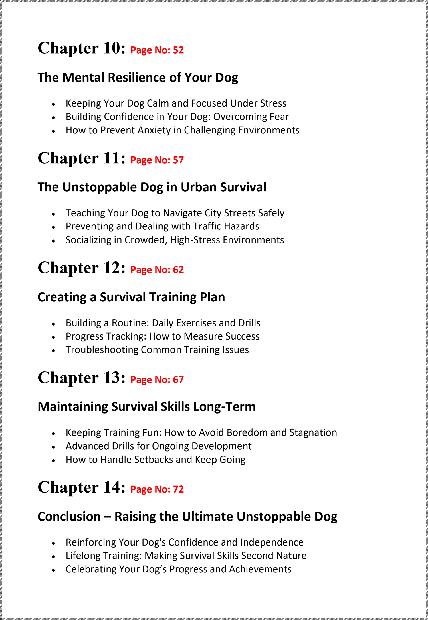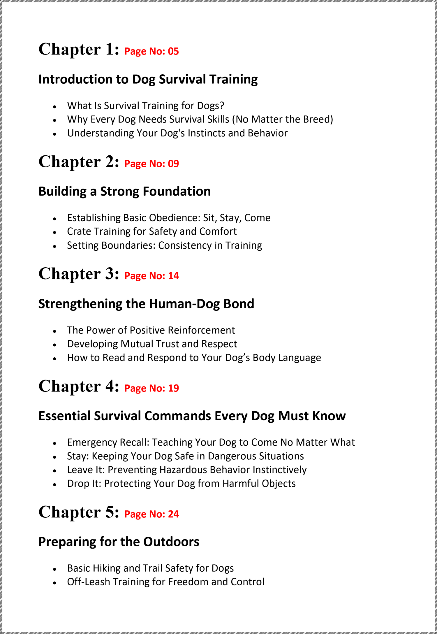 This eBook offers 14 chapters and 76 pages of expert survival training secrets, providing step-by-step guidance on how to transform your dog into an unstoppable companion—equipped with essential skills for every breed, survival situations, and real-life challenges.