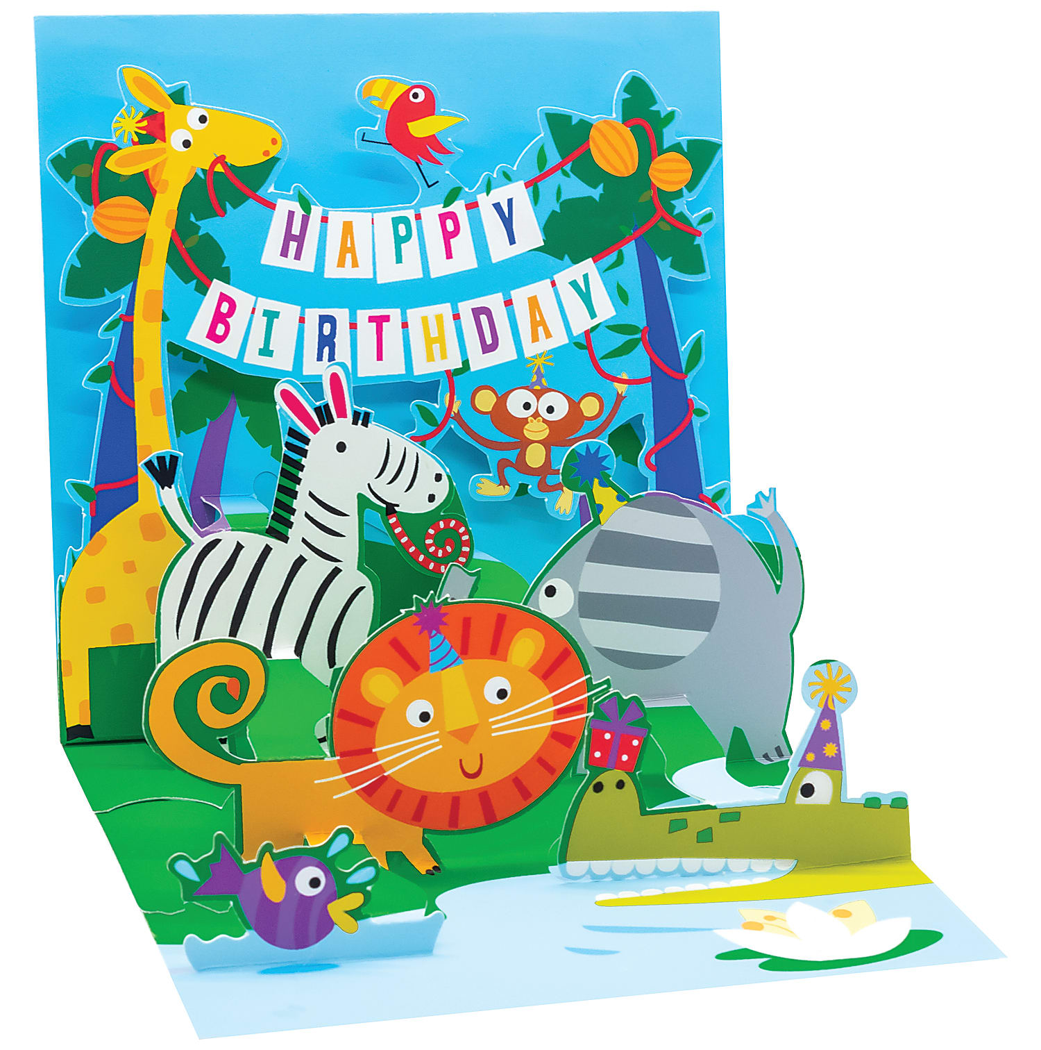 Up With Paper Everyday Pop-Up Greeting Card With Envelope, Half Fold, 4-1/2" x 4-1/2", Jungle Birthday