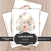 4 printable pages containing 4 Envelopes sized 5”x3.5”, “Pink Peonies” Collection. For Scrapbooking and Junk Journal creations. Pages are Letter size (8.5”x11”). Commercial use license included*. Envelope format identical on all pages.