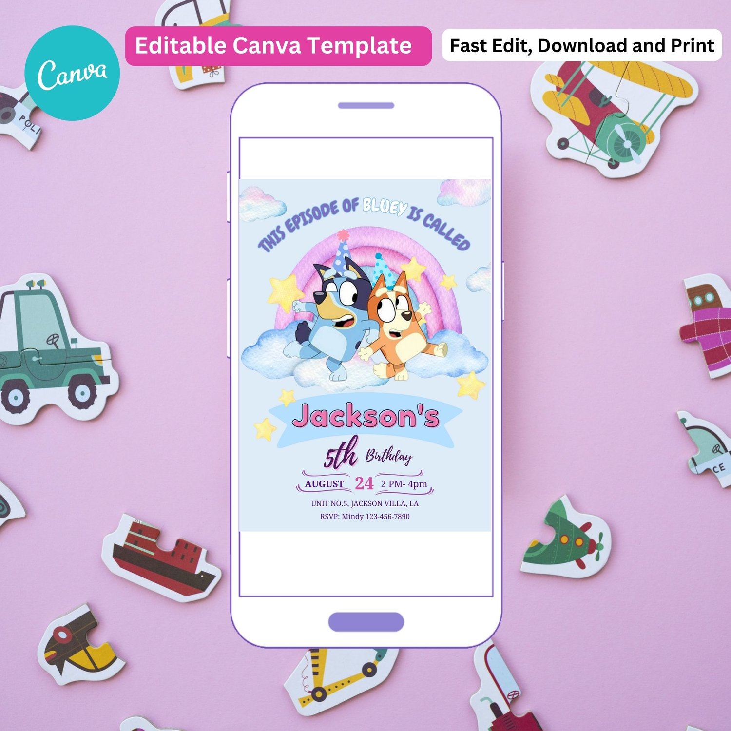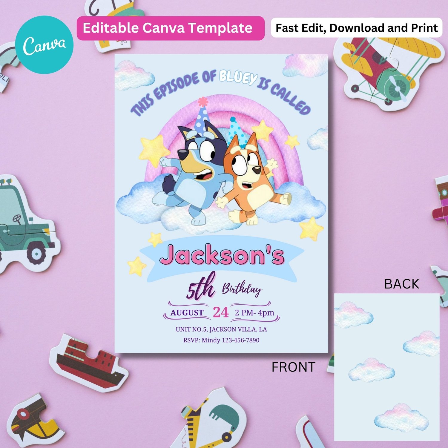 Introducing our vibrant Bluey Birthday Invitation! Perfect for throwing a fun-filled party that captures the spirit of one of the most beloved cartoon characters of the decade, Bluey.