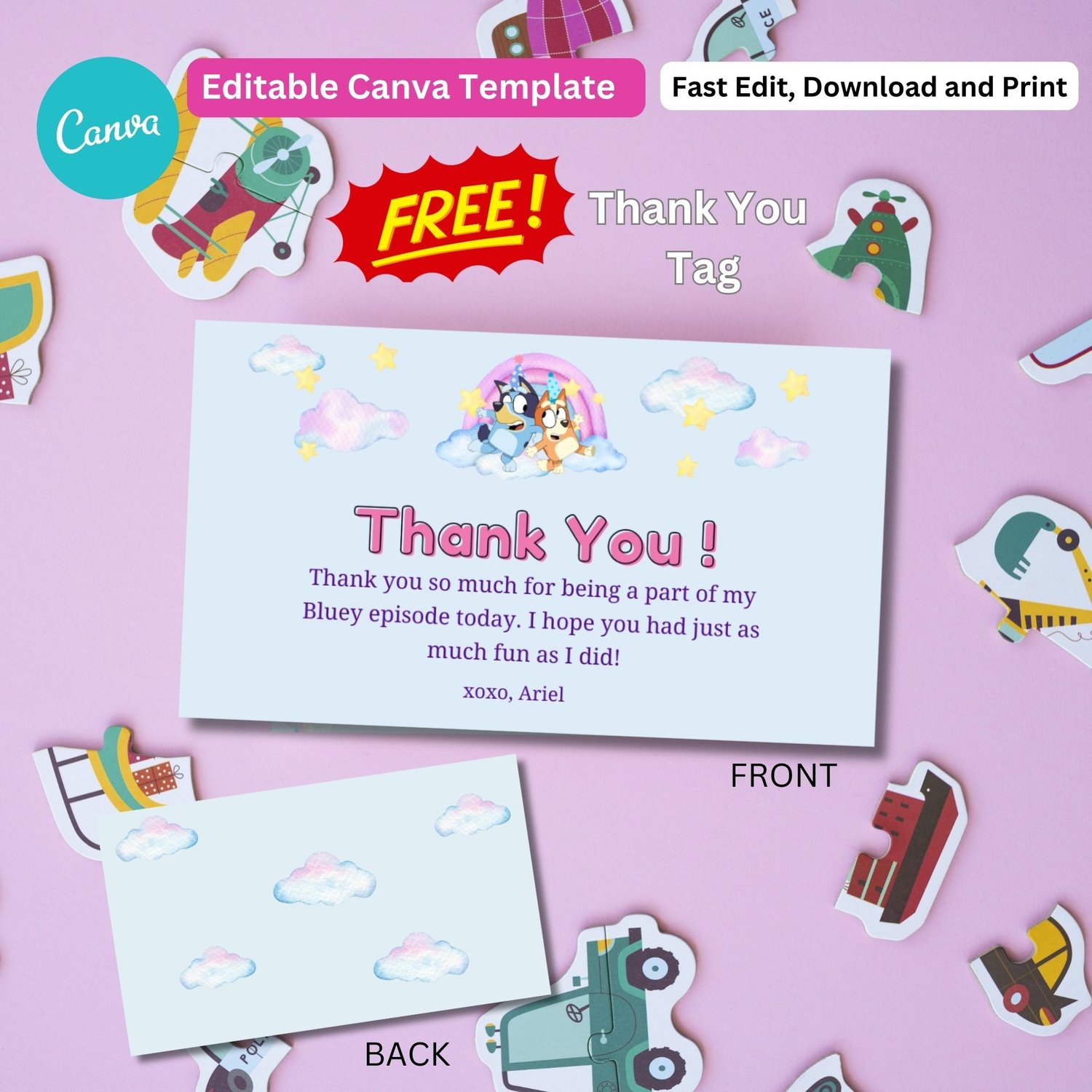 With our digital download, you can conveniently print as many copies as you need, making it ideal for parties of any size. Whether you're hosting a small gathering or a large extravaganza, our Bluey Birthday Invitation delivers the perfect touch of whimsy and charm, setting the stage for an incredible celebration.
