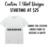 Click the link here to be forwarded to the custom t-shirt quote form. You will be able to upload images and type in details. After you receive your quote, you will return here to place your order.