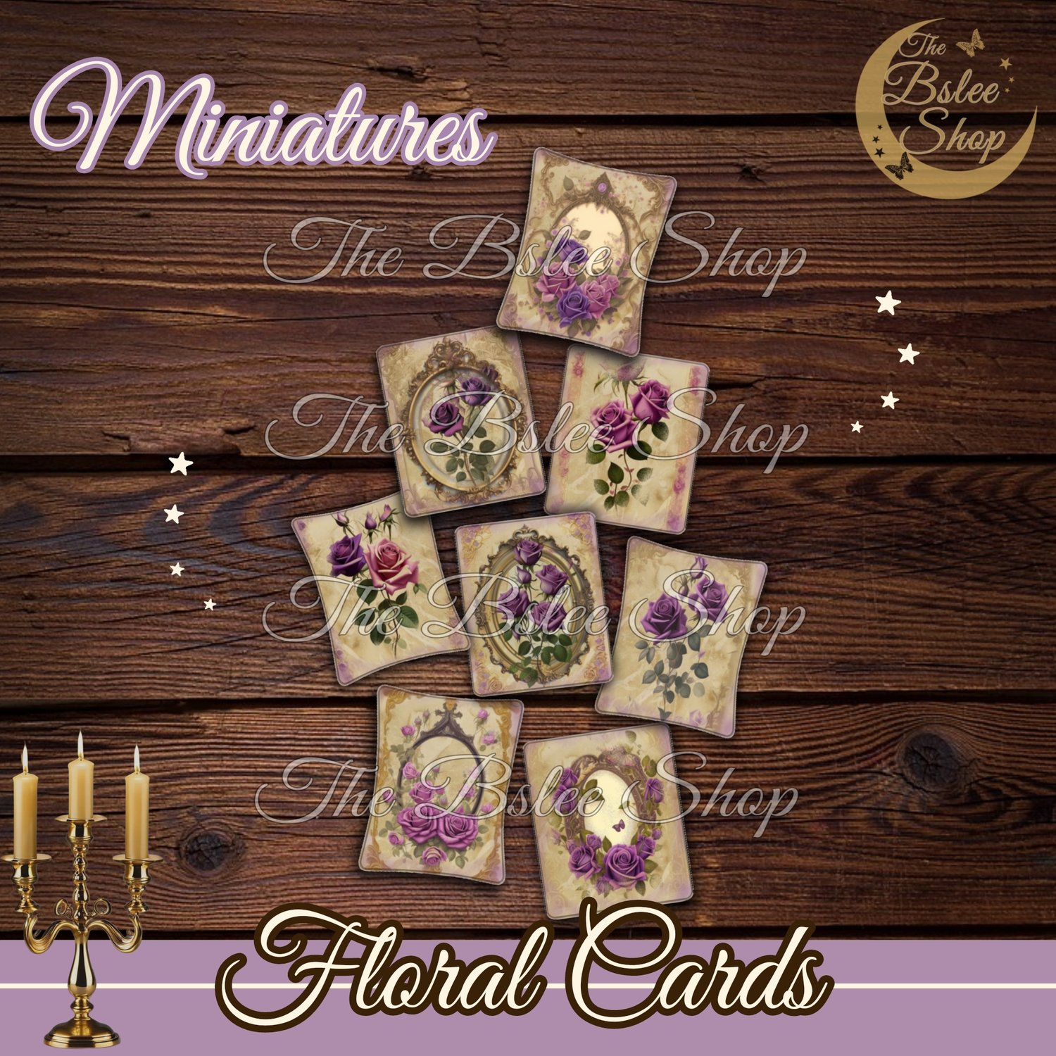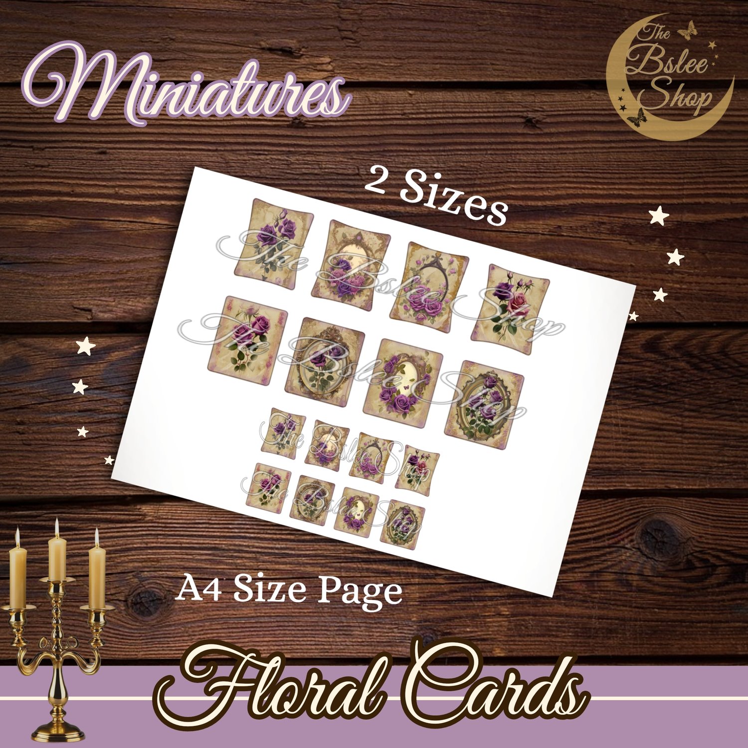 This is a set of printable miniature floral cards for your Dollhouse, Diorama or other crafts such as scrapbooking and collage. You will get 2 sizes and can scale down the file if you require a smaller size. Save time by instantly downloading the item, there is no shipping cost!