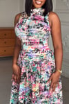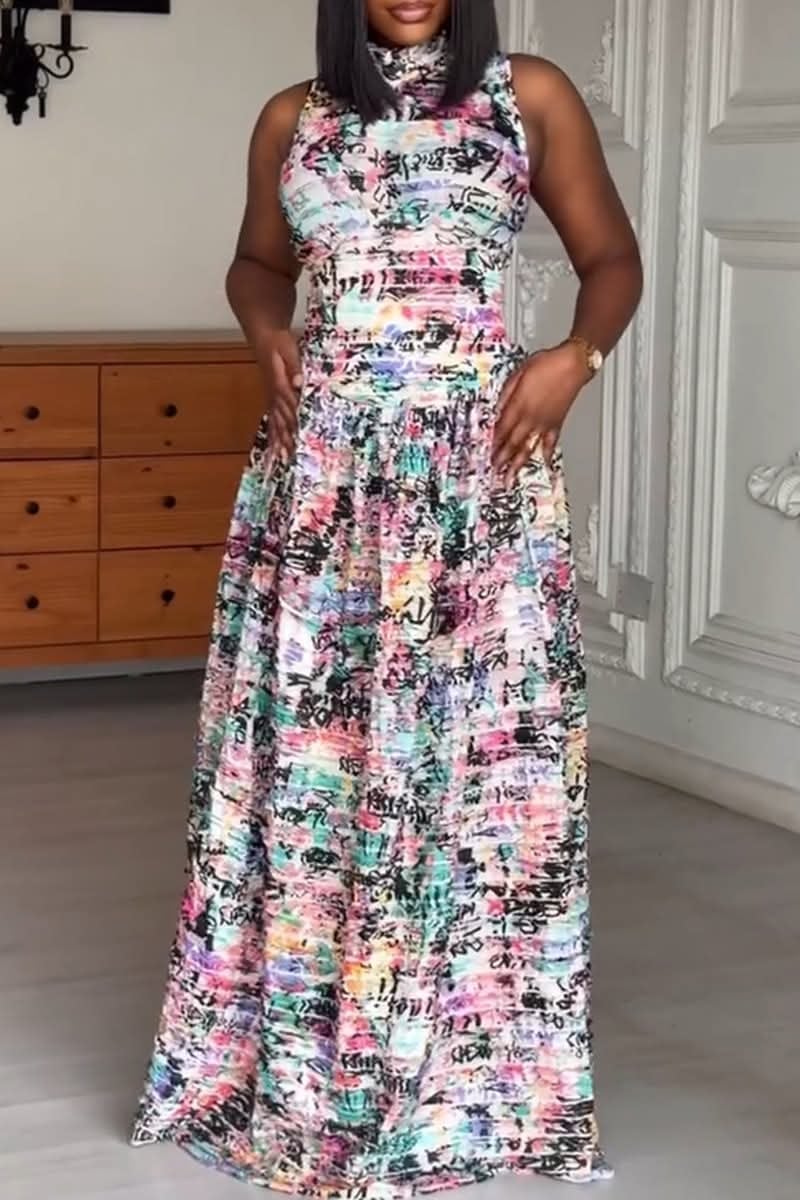 Multicolor Graphics Print Sleeveless O Neck Vacation Loose Ruched Maxi Dress