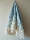 The sample for this pattern is made of two-ply hand-spun Estonian wool in two colours: off-white and light blue