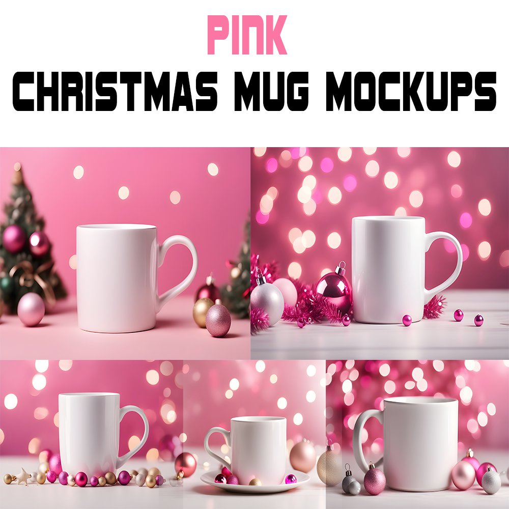 JPG Pink Christmas Mug Mockups PACK