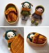 (Note: Paid PDF pattern includes the puppy doll, basket bed, blanket, and modifications for the human doll as well. Free pattern is for the puppy doll only.)
