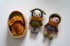 The Pinewood Puppy is an adorable, pocket-sized buddy that would love to go on outdoor trips with you. This sweet dog wears a hood, sweater, pants, and warm scarf. It comes with a basket bed and a blanket, making this a fun play set for little ones to enjoy.