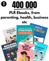 - 400,000 PLR eBooks across popular niches like health, business, self-help, and more