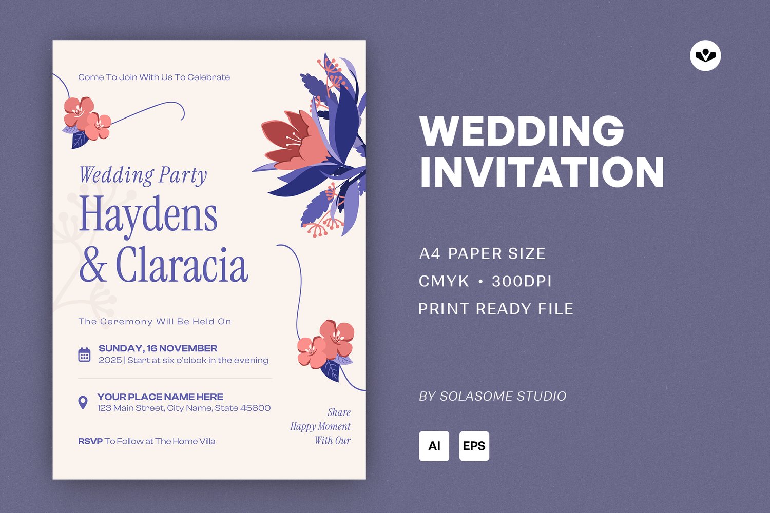 Purple Cream Wedding Invitation