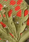 The flowers use florists wire and wadding to create a 3-D effect and are appliquéd to the background. Nearly all of the flower parts are worked in dc (US-sc) and, provided you take the instructions step by step, are not complicated.
