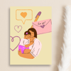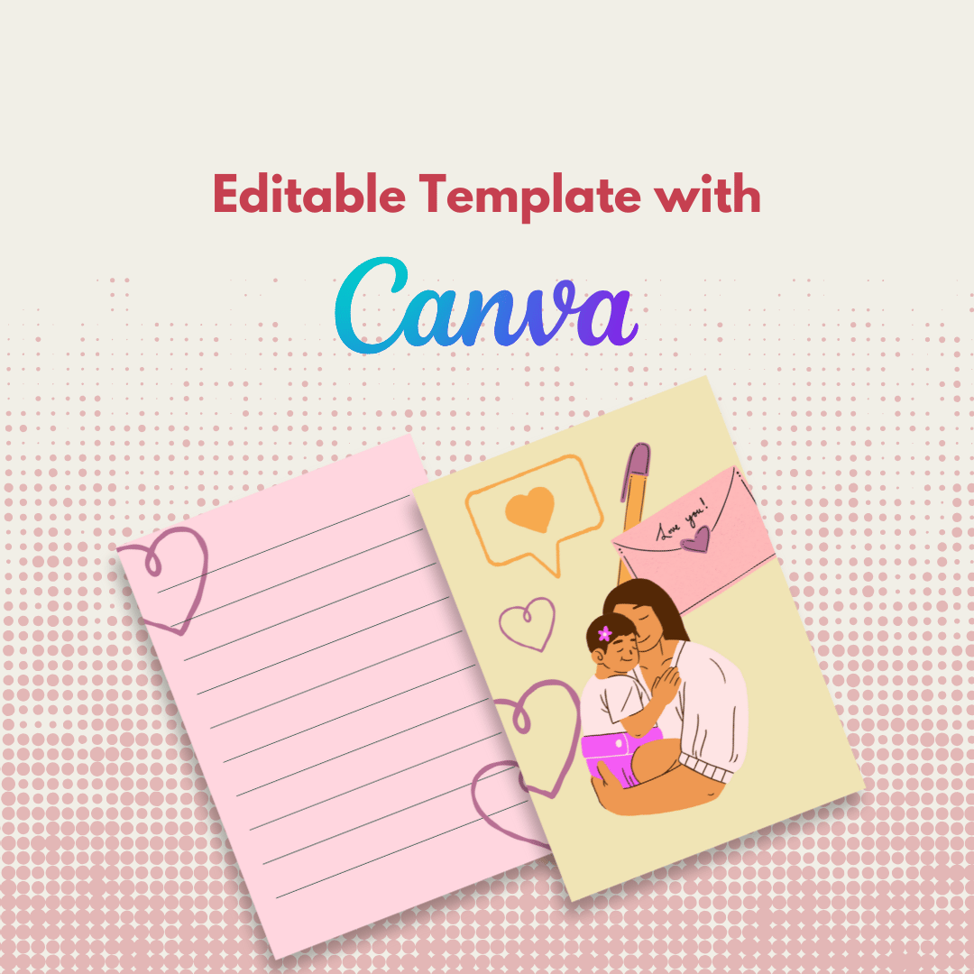 This printable and downloadable Canva template features a sweet illustration of a mother and daughter on the front and a simple, elegant lined back for writing a heartfelt message.