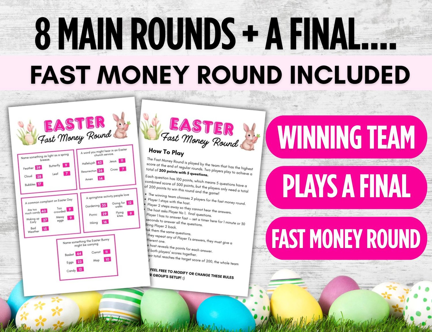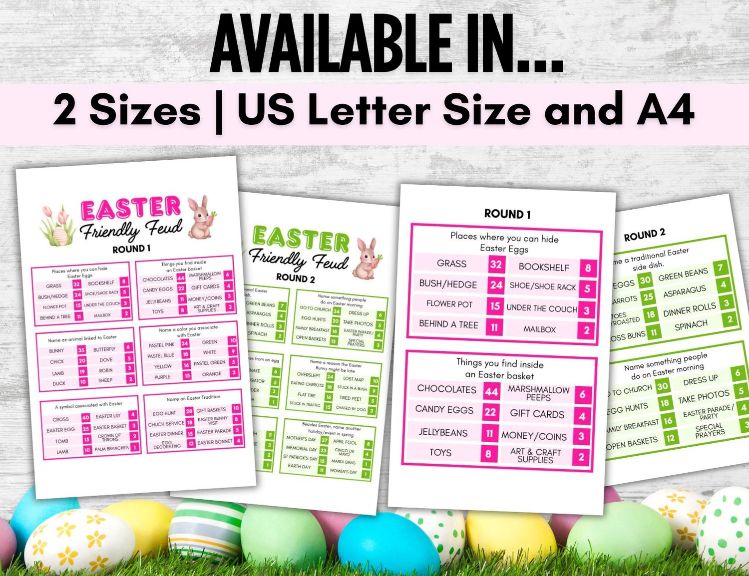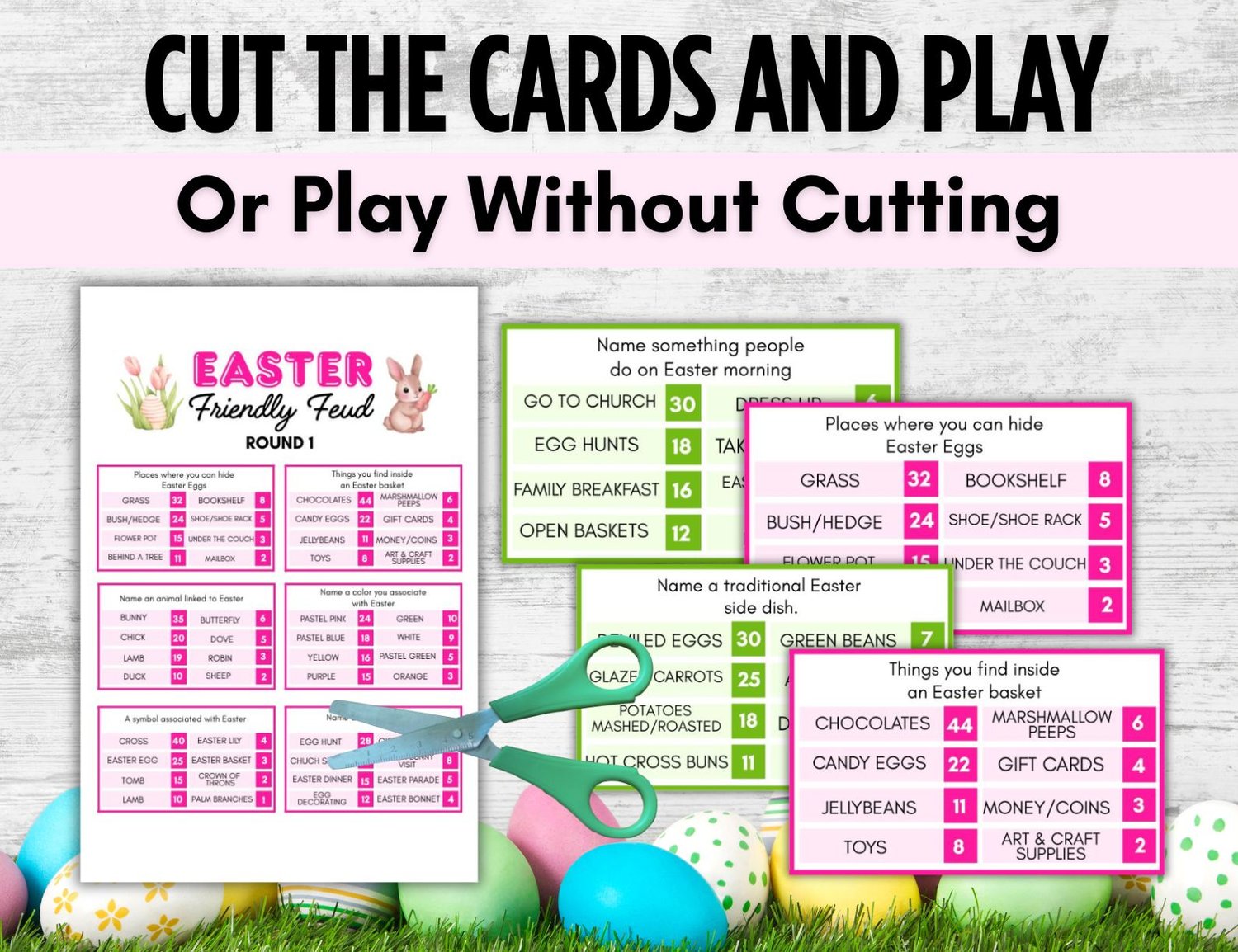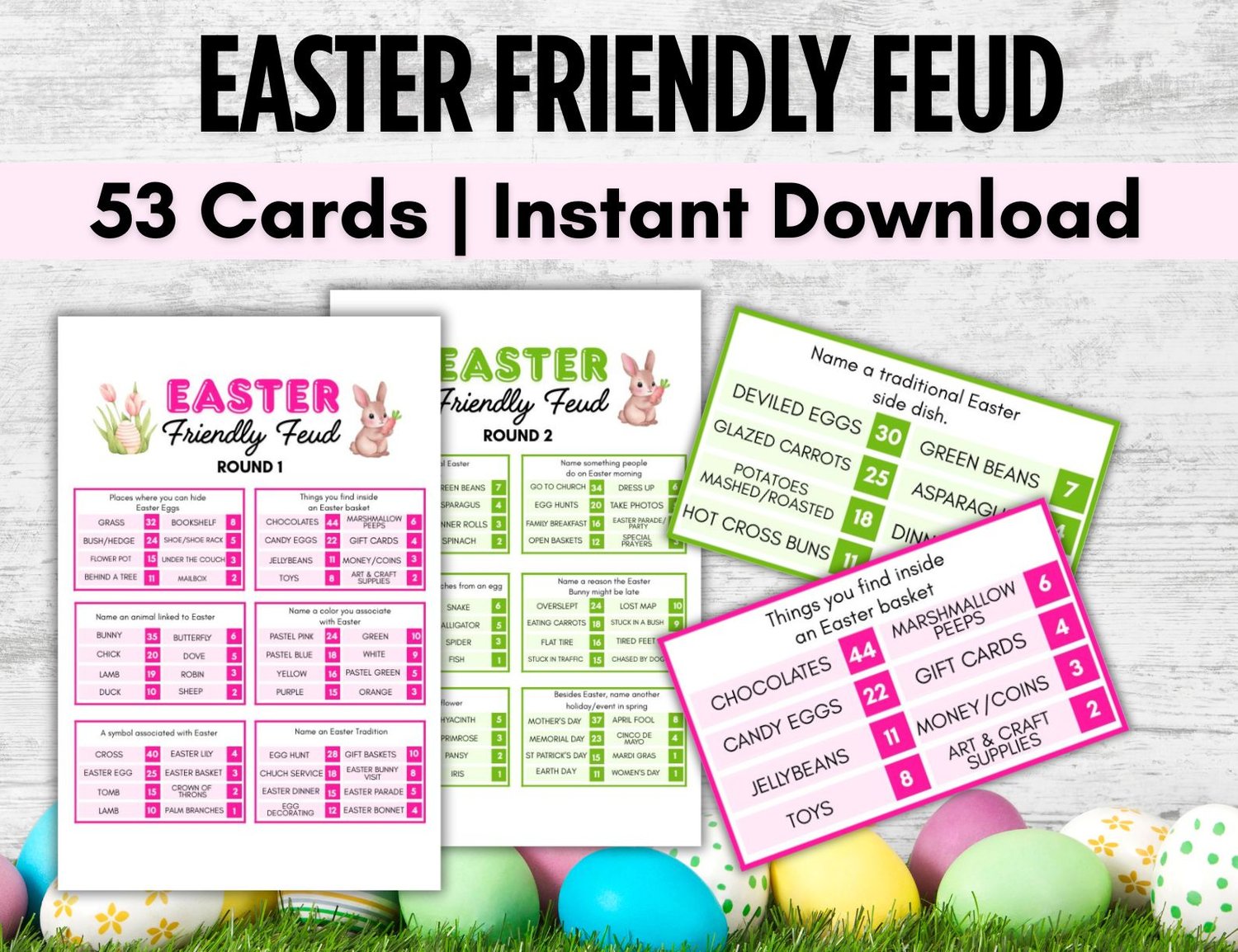 Play this hilarious game of Easter Friendly Feud with your friends, family, co-workers! Bring smiles and some friendly competition at your Easter gathering, and at other events.