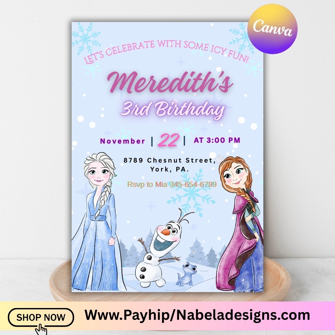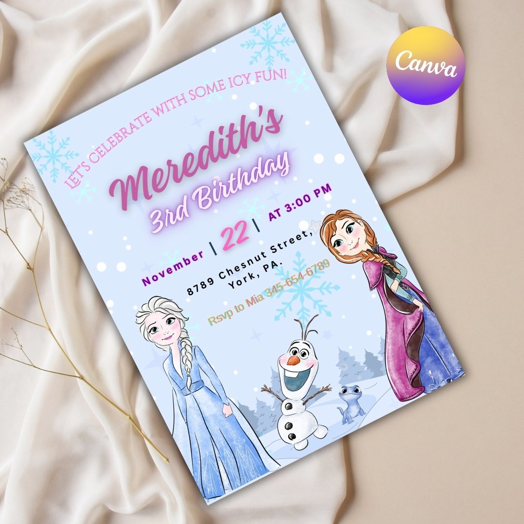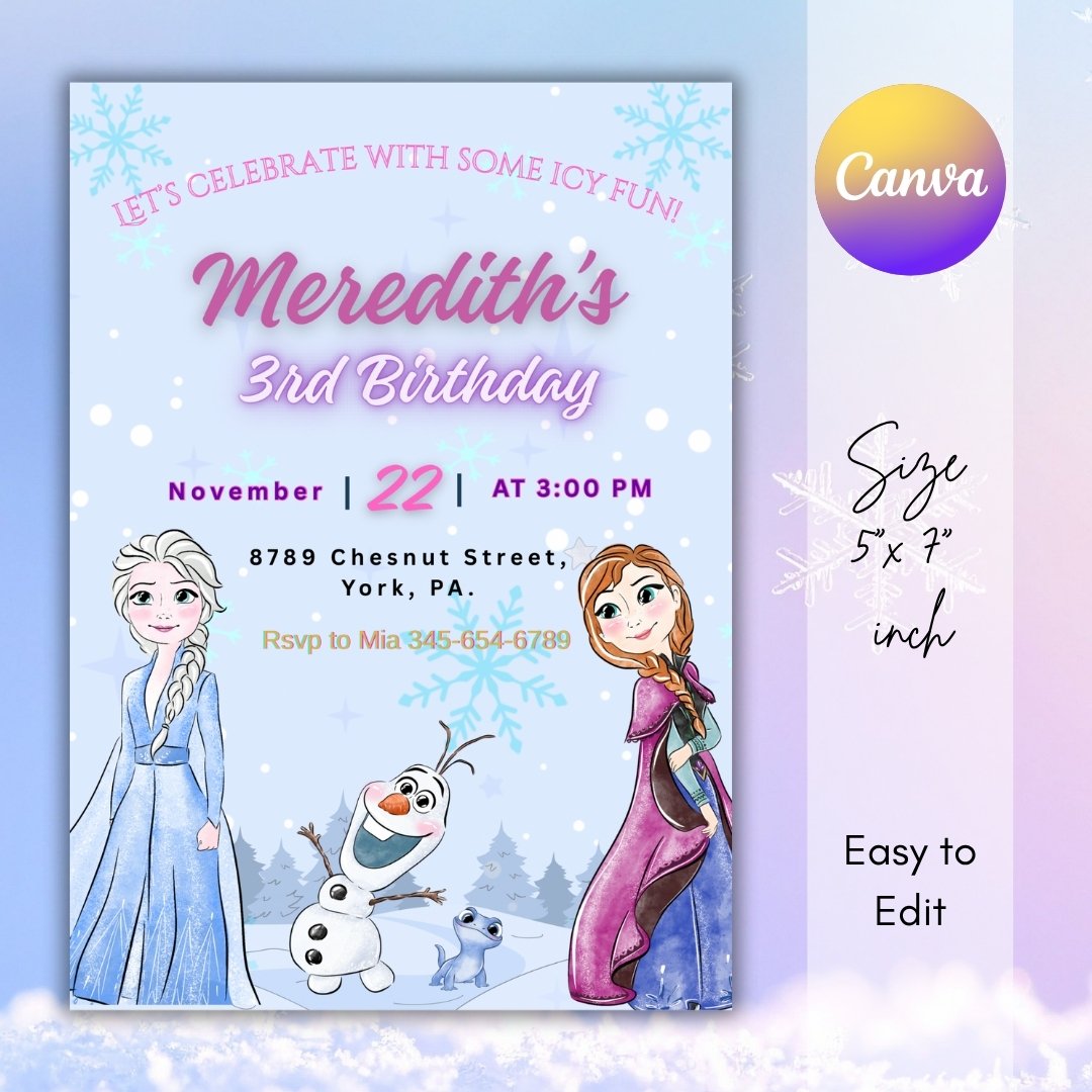 ✔ 1 Editable Frozen Birthday Invitation Template (Canva)