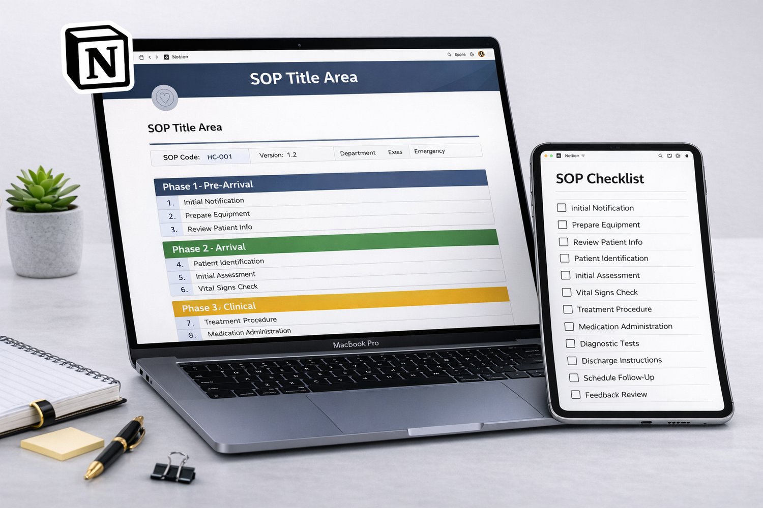 - 📋 23 step-by-step procedures with owner, time estimate, and system instructions