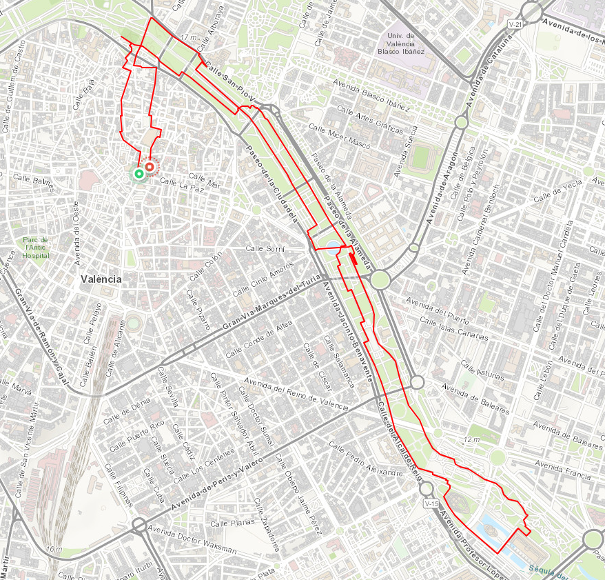 Distance : 10.2km (get 2 files - 10.2km and 13.5km including Jardins del Real)