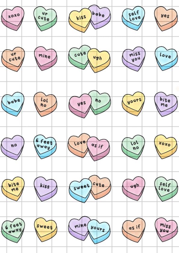 Candy Hearts Sticker Sheet - A5