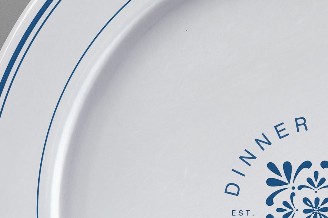 Flat-lay mockup scene featuring 2 ceramic plates—front and back views. Ideal for tableware branding, product display and packaging design. 7000 × 5000 px at 300 DPI.