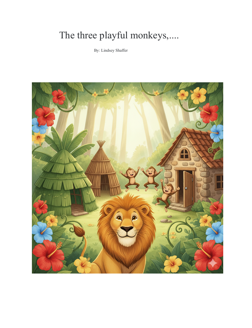 10 page children's, book about about three playful monkeys and sibling love and trust,.....