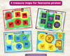 The maps and pieces also double as a kind of puzzle, so children must put the missing pieces in the correct places on the maps as they find them.