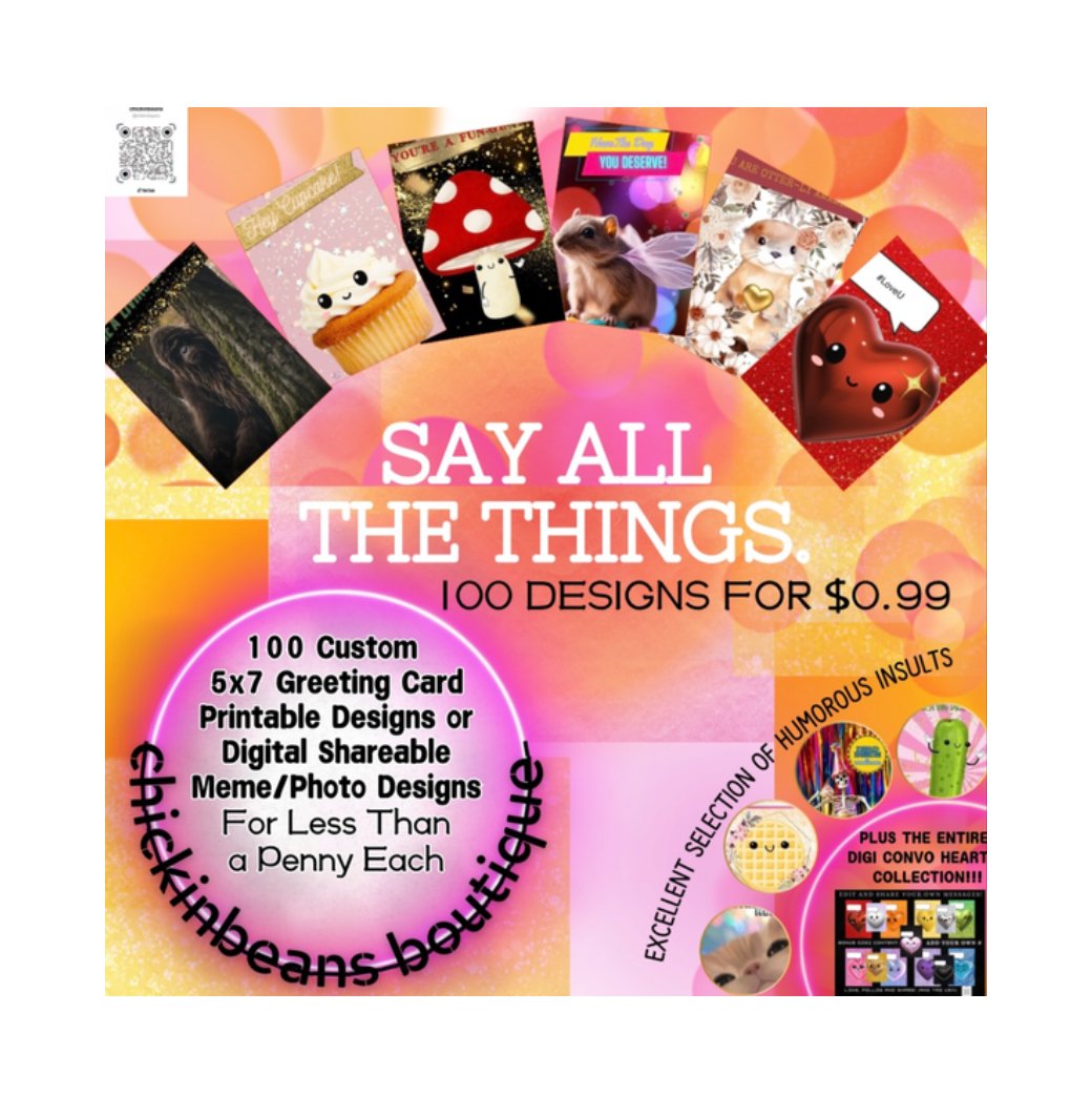 100 CUSTOM CREATED AND FORMATTED DIGITAL DESIGNS/MEME PACK FOR DIGITAL SHARING OR PRINTING