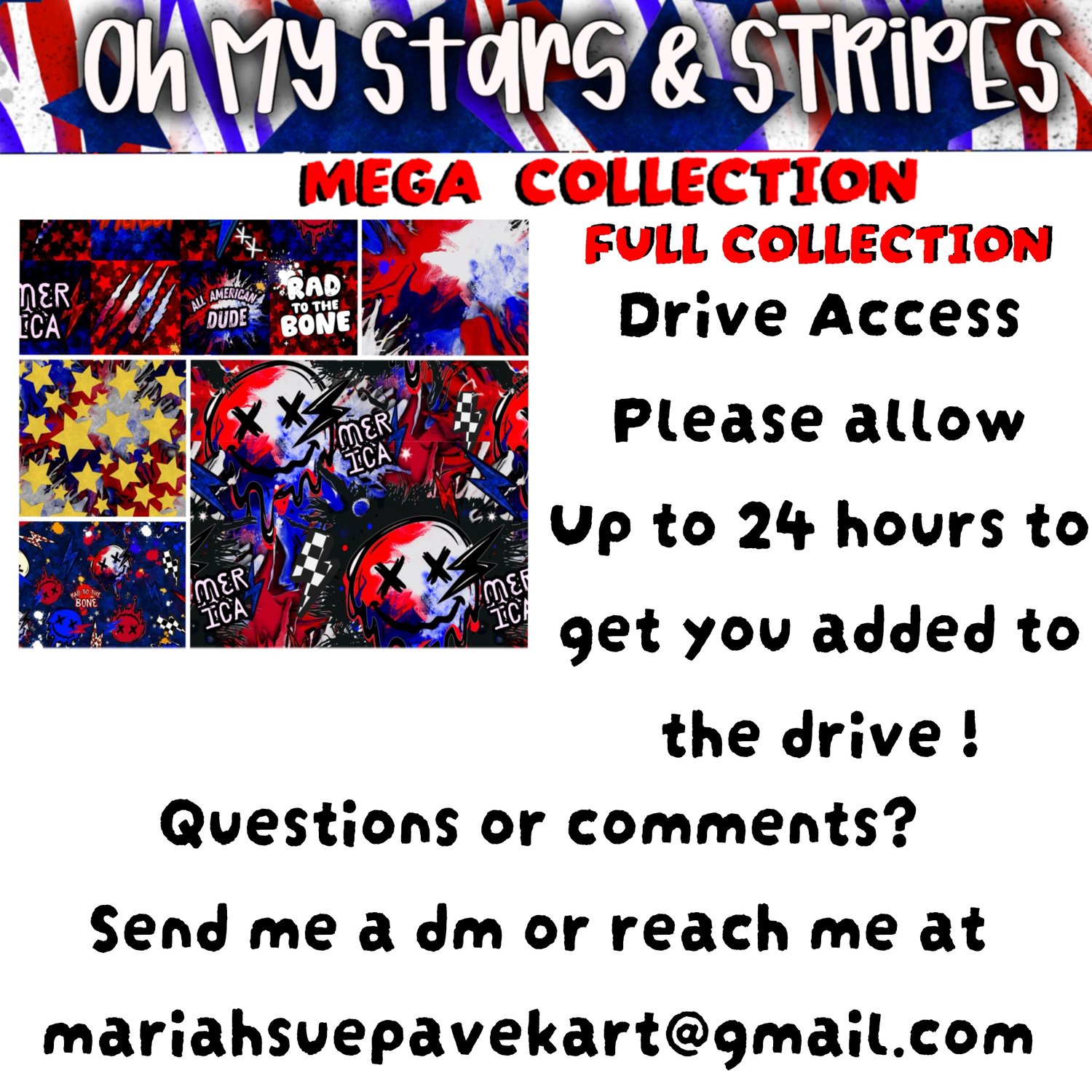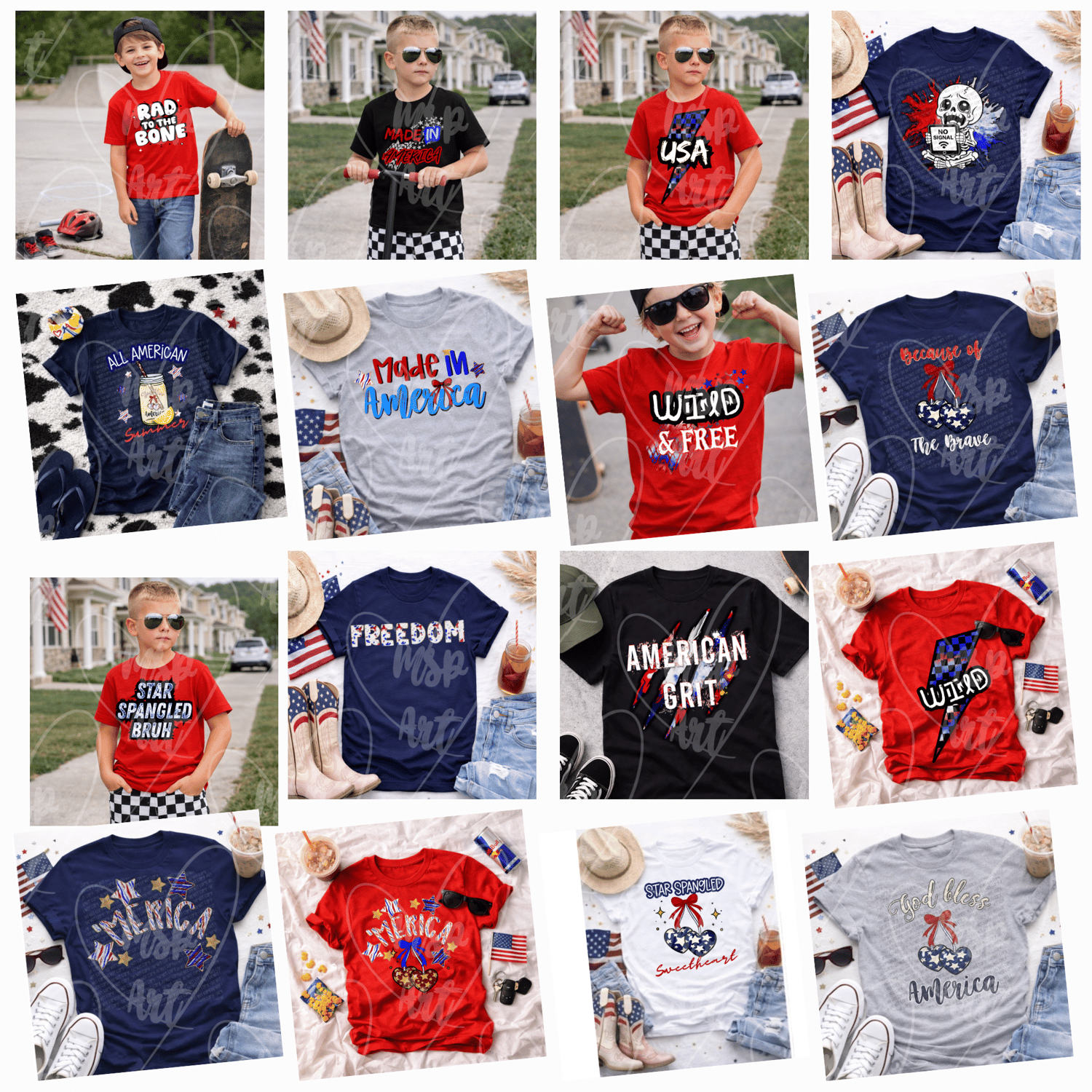 This full collection includes multiple mini collections in one — including the complete Rad Kids of America set and Star-Spangled Sweetheart designs — giving you a wide range of styles in a single bundle.