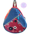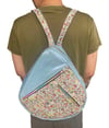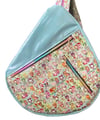 The "AQUADROP BACKPACK/SLING" is a fun waterdrop-shaped backpack that features pockets on the front, back, and inside! It includes a fully lined interior and a zipper opening that can be placed either along the side or across the top.