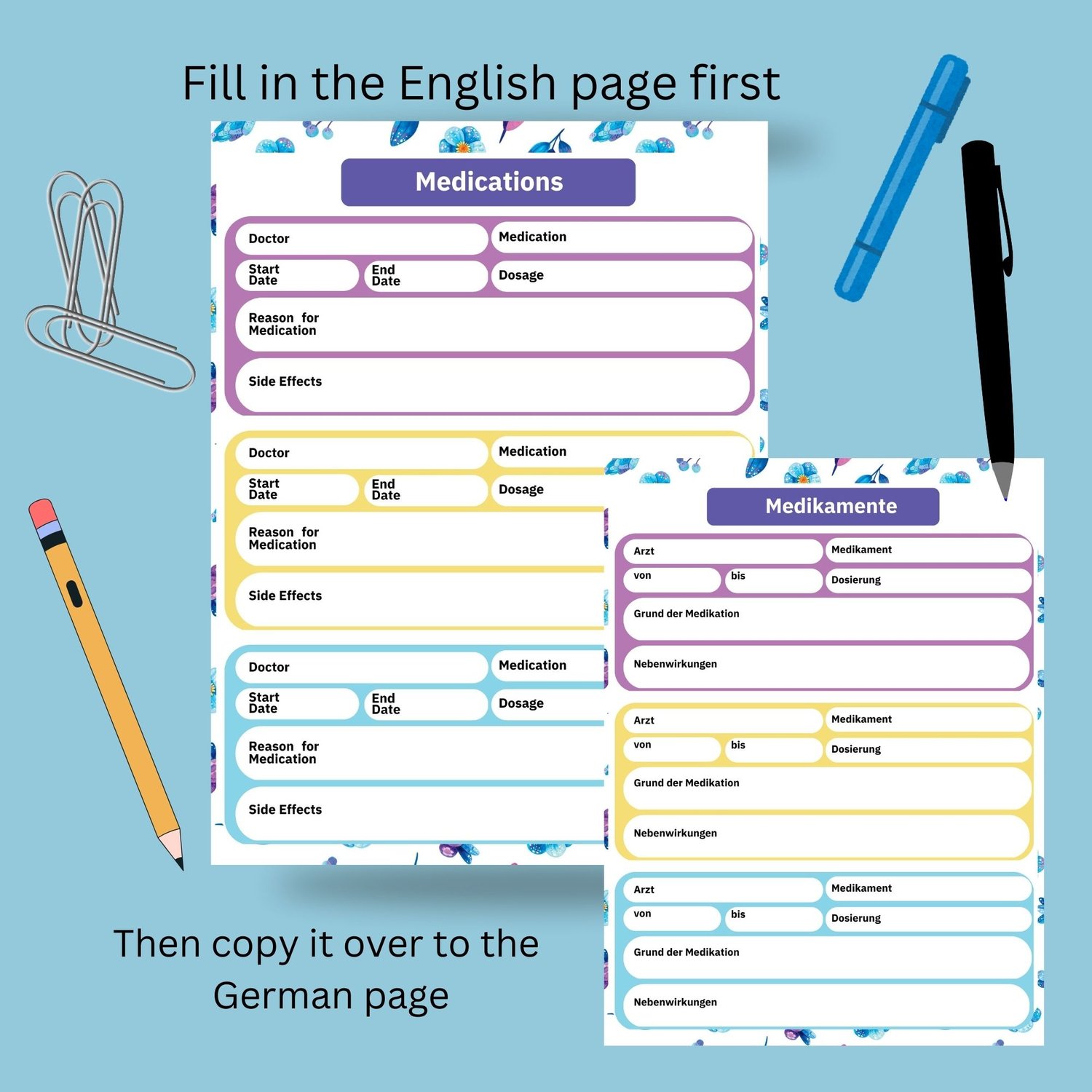 Family medical organizer with extra pages for travels to Germany