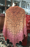 This design is a top down triangular shape constructed from the neck down from a garter St tab.