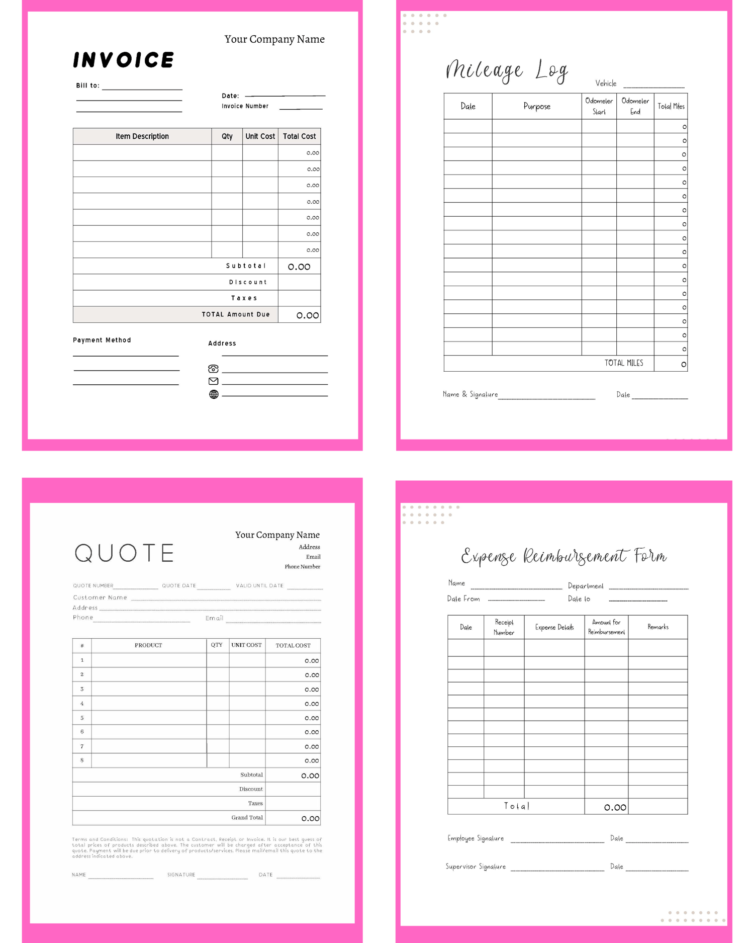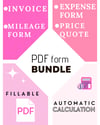 Fillable PDF Form Bundle - Invoice, Mileage Log, Price Quote, Expense Reimbursement Form