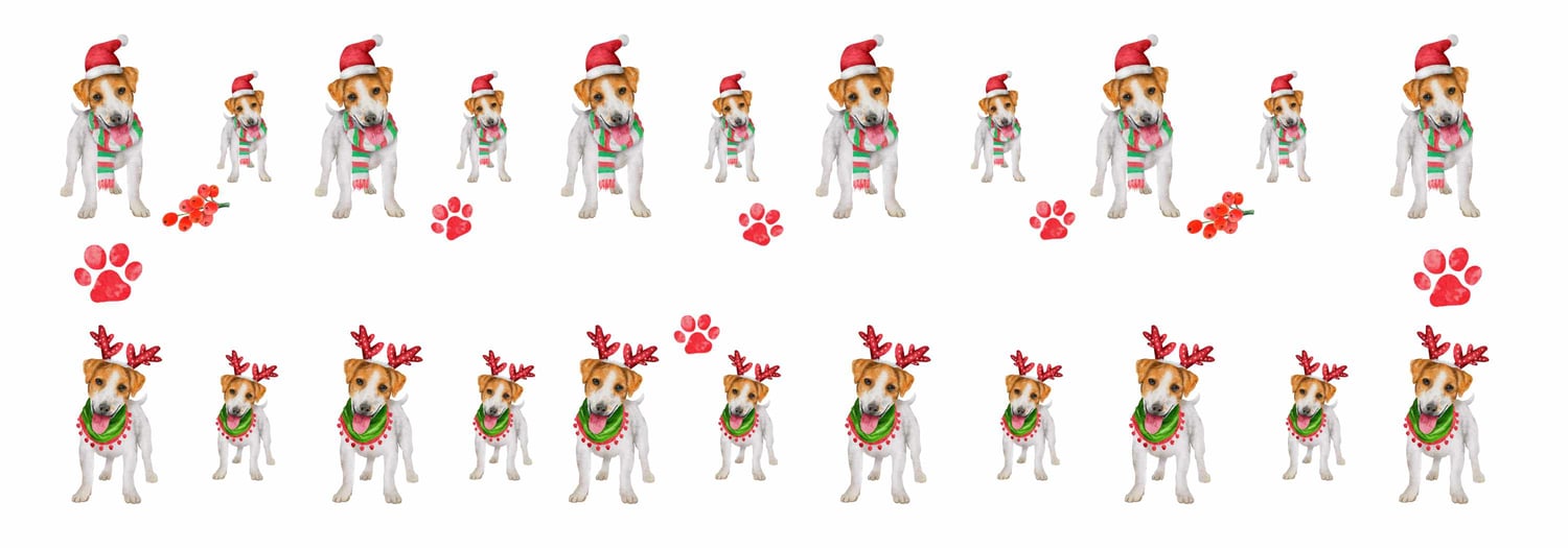 3 X CHRISTMAS DOG MUG WRAPS ONE HAS BEEN LEFT BLANK DOW THE MIDDLE SO YOU CAN ADD YOUR OWN MESSAGE, ONE WITH MERRY CHRISTMAS ANS ONE WITH A RED BOARDER