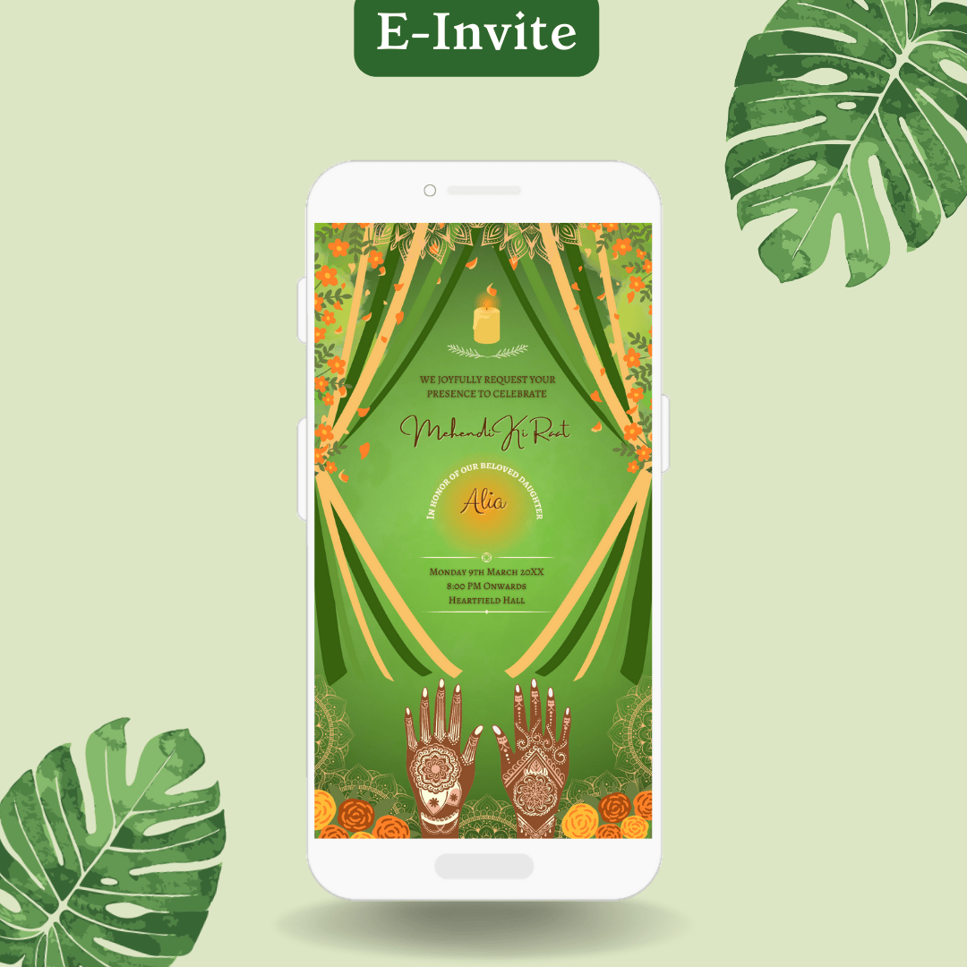 Elevate Your Henna/Mehendi Wedding Function Ceremony with Our Exquisite Digital Invitations! 🌼🌿