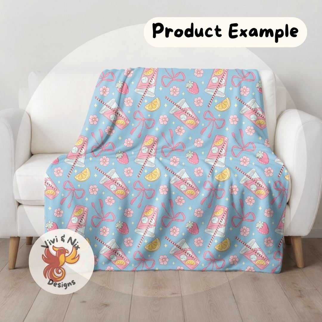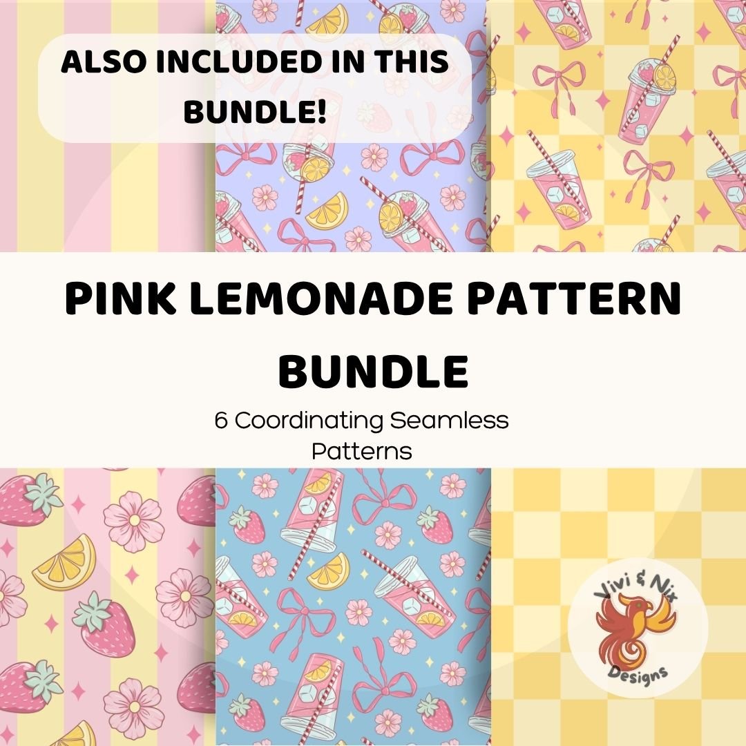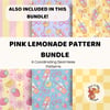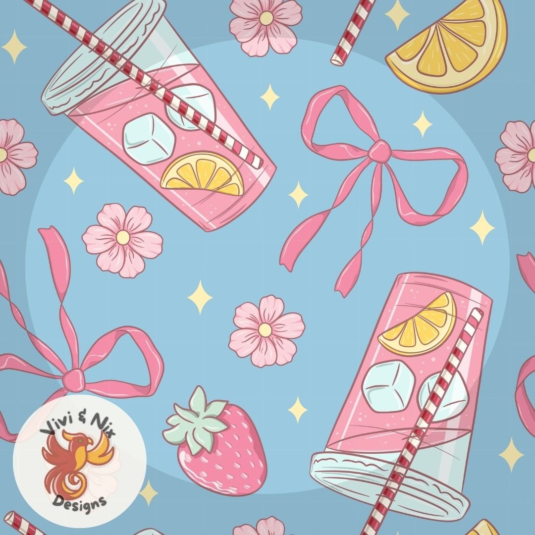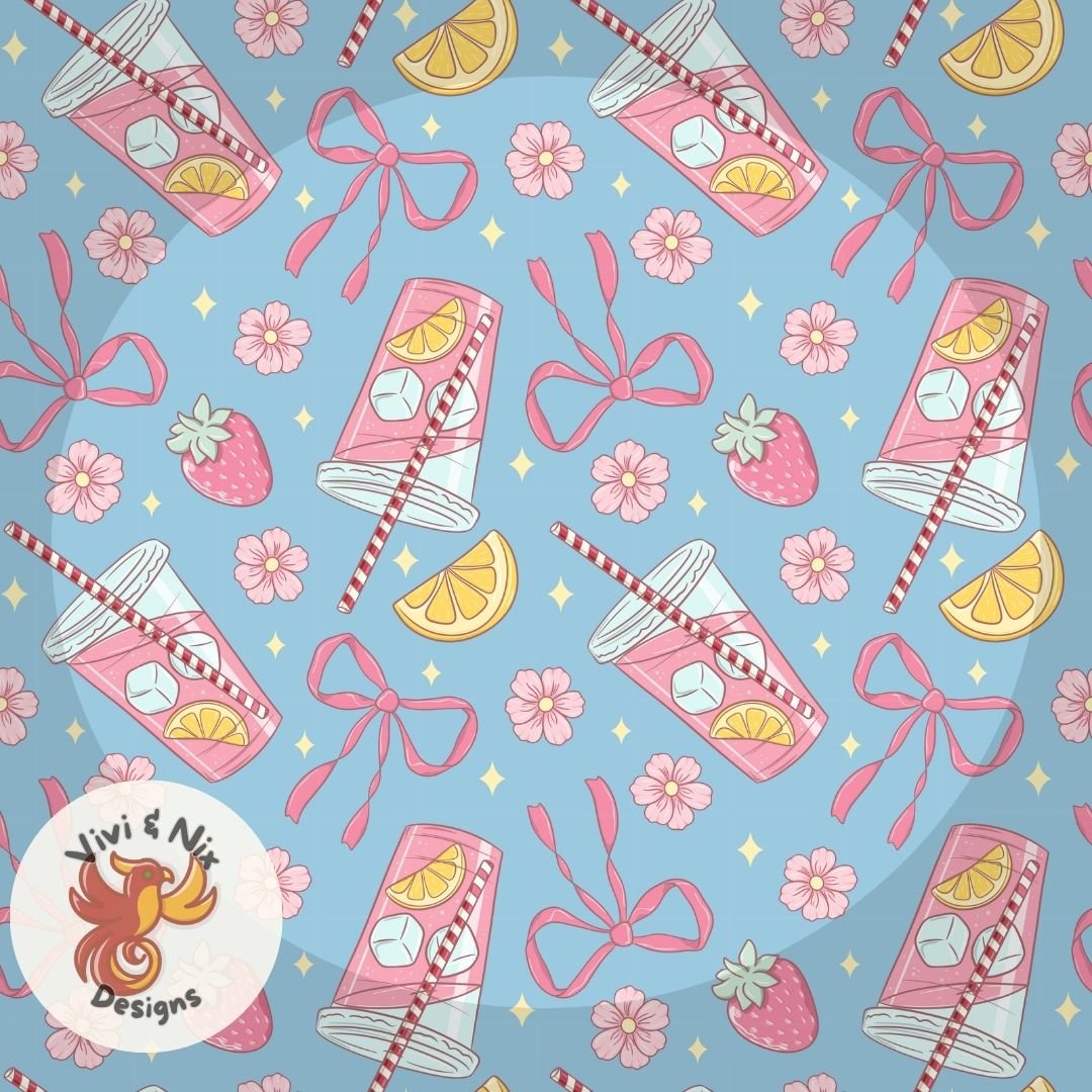 Add a sweet summer touch to your projects with this Pink Lemonade Seamless Pattern. This hand-drawn design features refreshing strawberry lemonade drinks, citrus slices, coquette bows, and delicate florals in a soft pastel palette.