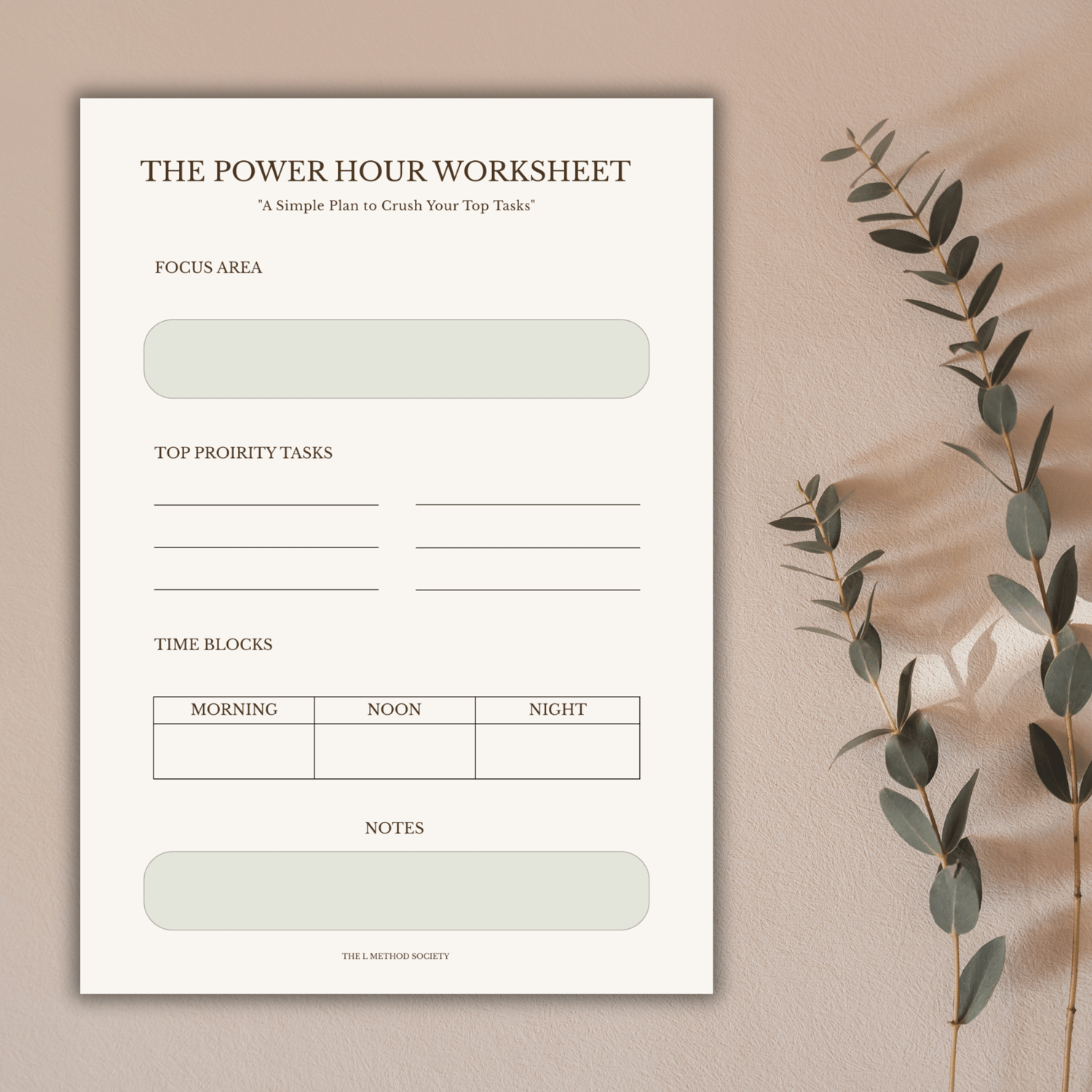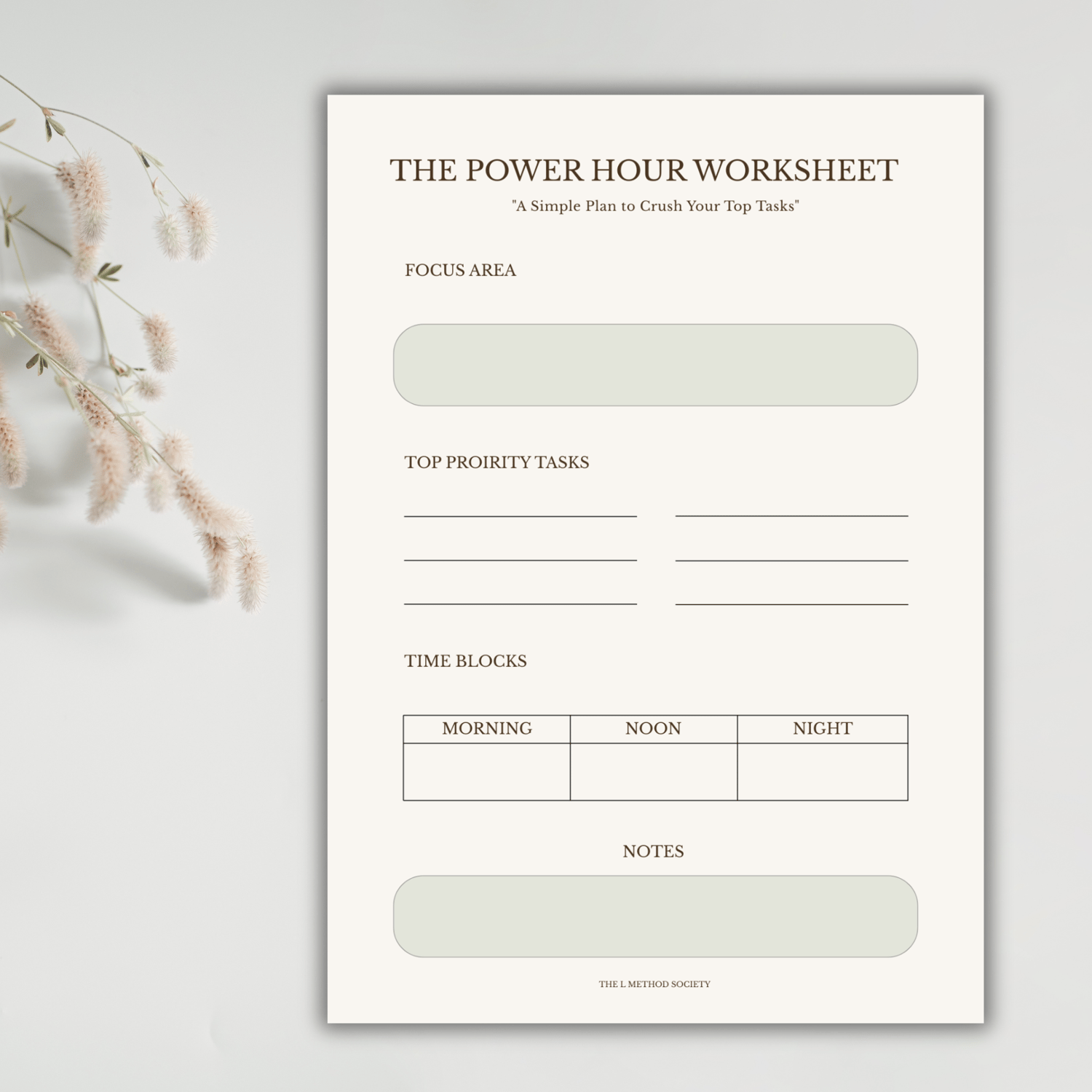 The editable Power Hour Worksheet printable helps you take control of your time, work with intention, and achieve more in less time.