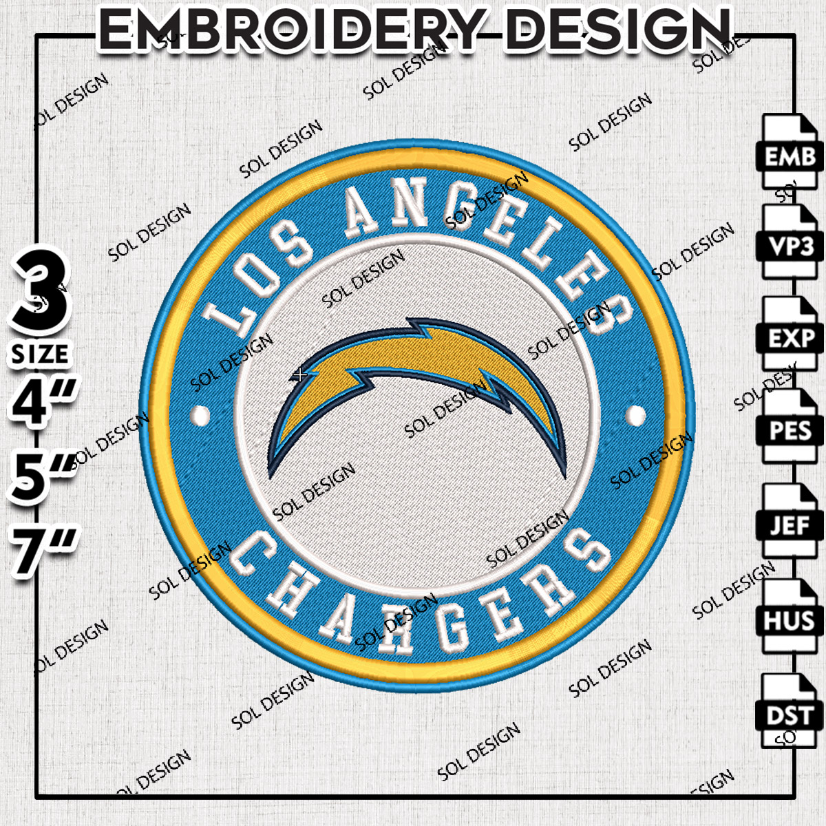 NFL Los Angeles Chargers Circle Logo Embroidery Designs, NFL Chargers Embroidery Designs, NFL Embroidery Designs, NFL LA Chargers Machine Embroidery Design, Digital Download